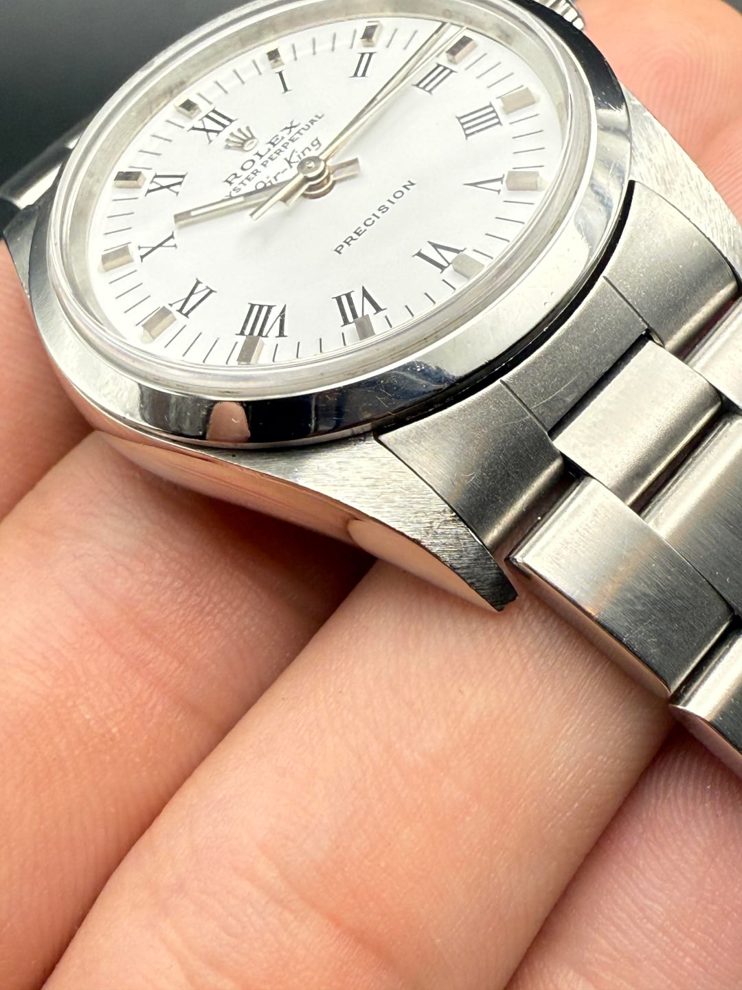 For sale is an Air-King in condition that can only be described as excellent for a pre-owned watch. Comes with the upgraded Caliber 3130, etched sapphire crystal, and Luminova hands and markers. The watch runs perfectly, and both the bracelet and clasp are factory tight. A standout piece in this shape—papers even specify the dial. Light marks present. Contents: **Watch, box, and papers.** Ref: **14000M** Price: **4,999** Dimensions: 34mm Serial: Y Papers Marked 2005 Shipping: CONUS only, unless label is provided. Location: US, Iowa Please inspect the photos in their entirety, as they show the accurate and true condition of the piece. Purchase with confidence—we are a registered business in the state of Iowa with over 100+ five-star reviews. Plenty of references locally and from most watch groups, happy to run a reference check anywhere! TS: [https://imgur.com/a/2qqntpO](https://imgur.com/a/2qqntpO)