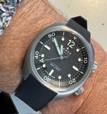 Up for sale from my personal collection (I am not a dealer) is a Farer Endeavour II Aqua Compressor in Grade 2 titanium purchased in 2024 directly from Farer. Warranty in force till 2029. In excellent condition keeping excellent time. Features an elabore-grade Sellita 200 movement, true super-compressor case (not just a case someone slapped a name on), dual crowns (capped in bronze!) and excellent lume. This is easily the most nicely finished titanium watch I’ve ever held, and in my opinion far outstrips the finishing on many more expensive competitors, including the Omega Seamaster. 41.5mm wide x 45mm lug to lug x 12.5mm thick. Super-comfortable and literally disappears on your wrist from a weight/comfort perspective. Full kit: tapered titanium bracelet (all links included), unused natural rubber strap, unused polishing cloth, inner and outer boxes, warranty card. Price is $950 shipped by USPS Priority Mail in CONUS with insurance and payment via Zelle or equivalent. Add 3% for PP G&S. No sales outside of CONUS and no trades or lowball offers, please. Thanks for looking. Alex