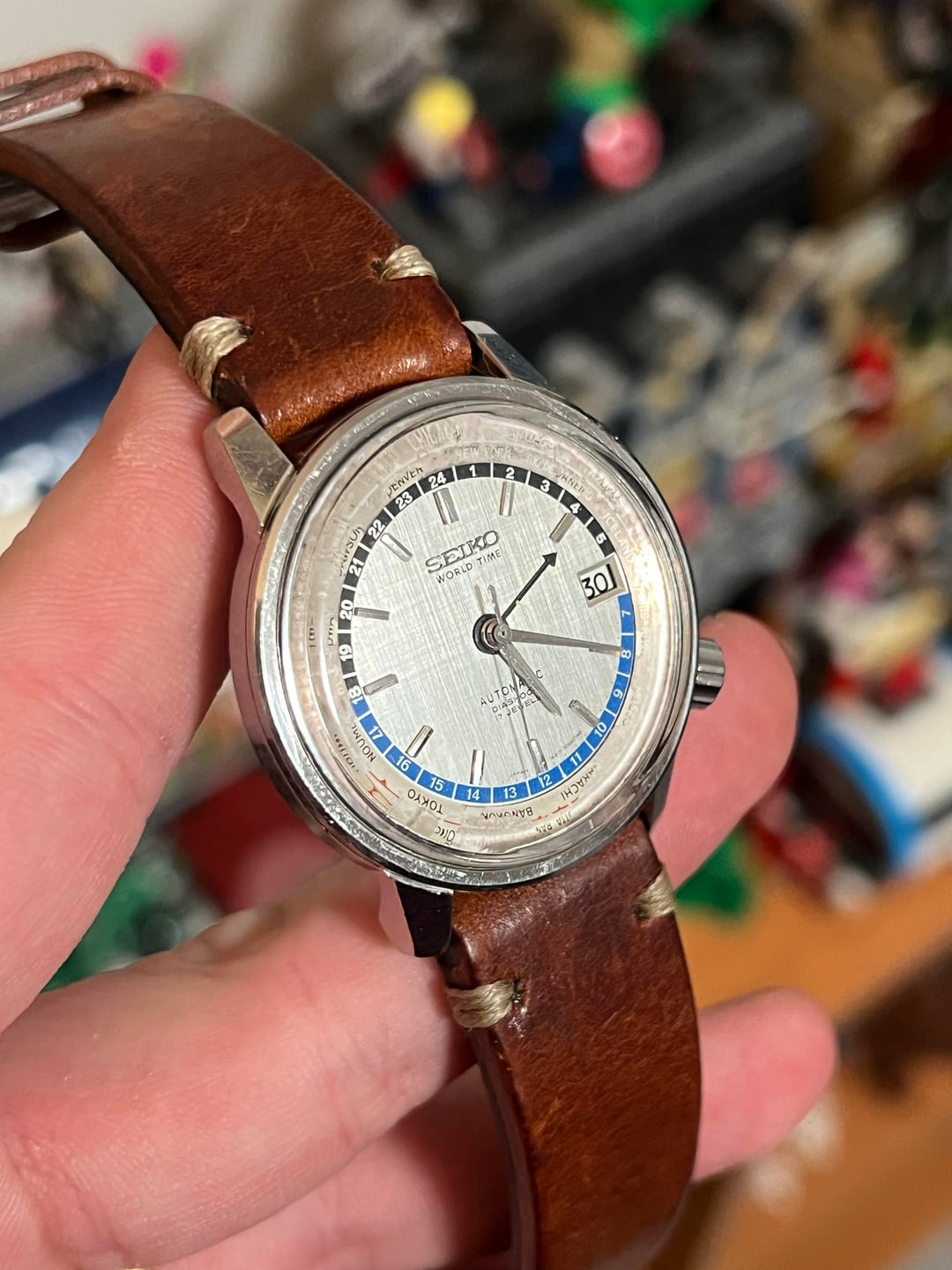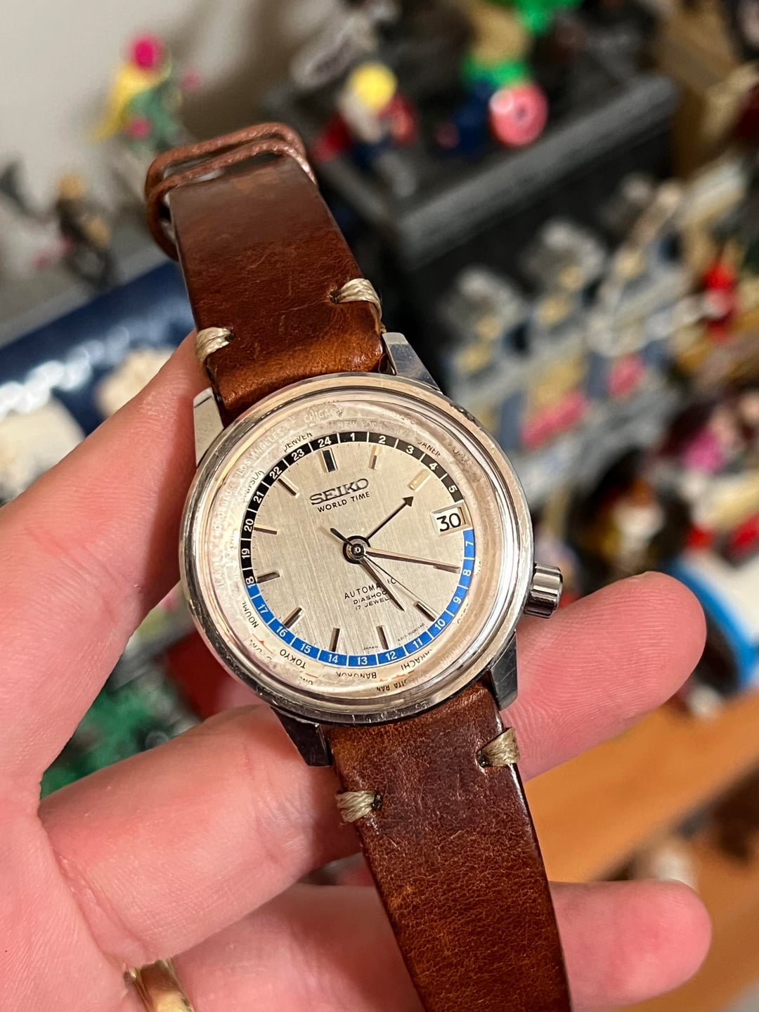 Hey all, selling one of my favorite vintage Seikos today! I am extremely open to offers as I have some emergency car repairs I need to get done like, tomorrow lol This 6217-7000 world timer dates to the mid 1960’s and was originally made for the 1964 Olympics that were held in Tokyo, with Seiko being the official timekeeper for the games! This watch is in all original condition. It keeps great time and the quickset date function works exactly as it should! The largest cosmetic issue is there has been some paint loss for the internal time zone bezel unfortunately. This does not affect functionality of the bezel though. I am asking $500 OBO, I am super open to offers! Shipping and tracking are included for the lower 48 states. Thanks!