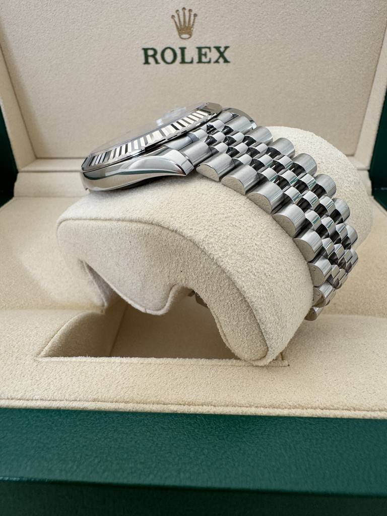 This watch comes in 41MM with 18K White Gold fluted bezel on a Jubilee band with white marker Dial.
