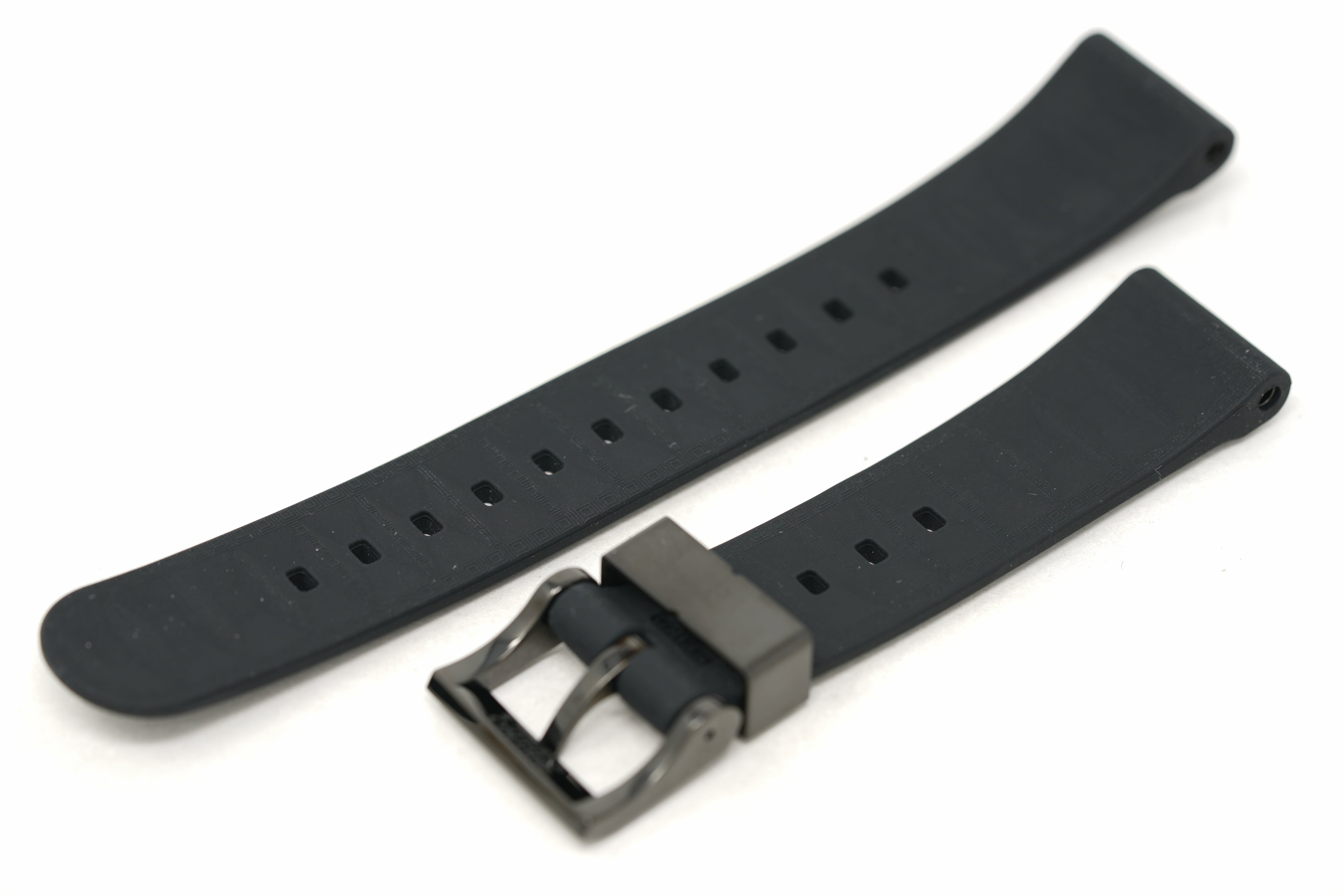Strap/Bracelet: Stainless Steel Bracelet & Black Rubber Strap