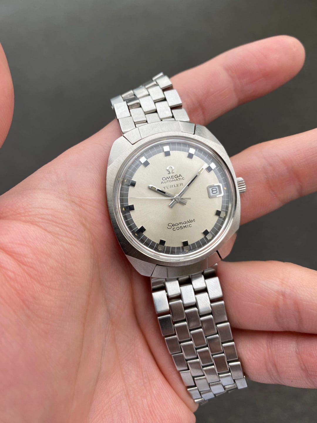 ![Thumbnail [WTS] Omega Seamaster Cosmic Geometric Case With ’Türler’ Dial - Reference 166.022 Original Brick Bracelet - Cal. 565 Automatic Quickset Date - From 1968 - $900 5](https://cdn-cf.watchpatrol.net/120x120/img/full/88670d225d18f82248a99798fa5cf878858205e0.jpg)