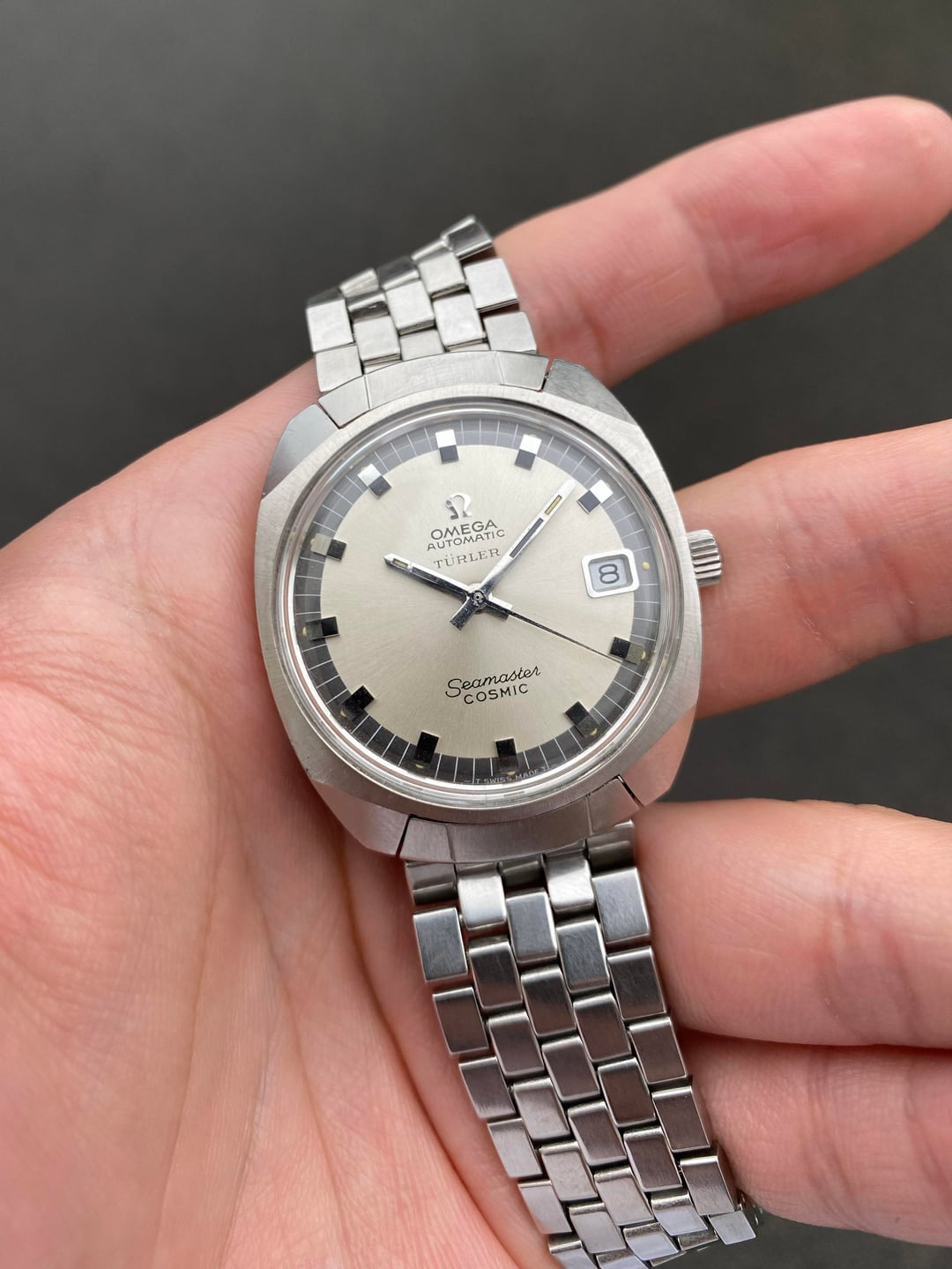 ![Thumbnail [WTS] Omega Seamaster Cosmic Geometric Case With ’Türler’ Dial - Reference 166.022 Original Brick Bracelet - Cal. 565 Automatic Quickset Date - From 1968 - $900 8](https://cdn-cf.watchpatrol.net/120x120/img/full/ac5cd5eda2f26a4e913c6bc00b310ad4fb078097.jpg)