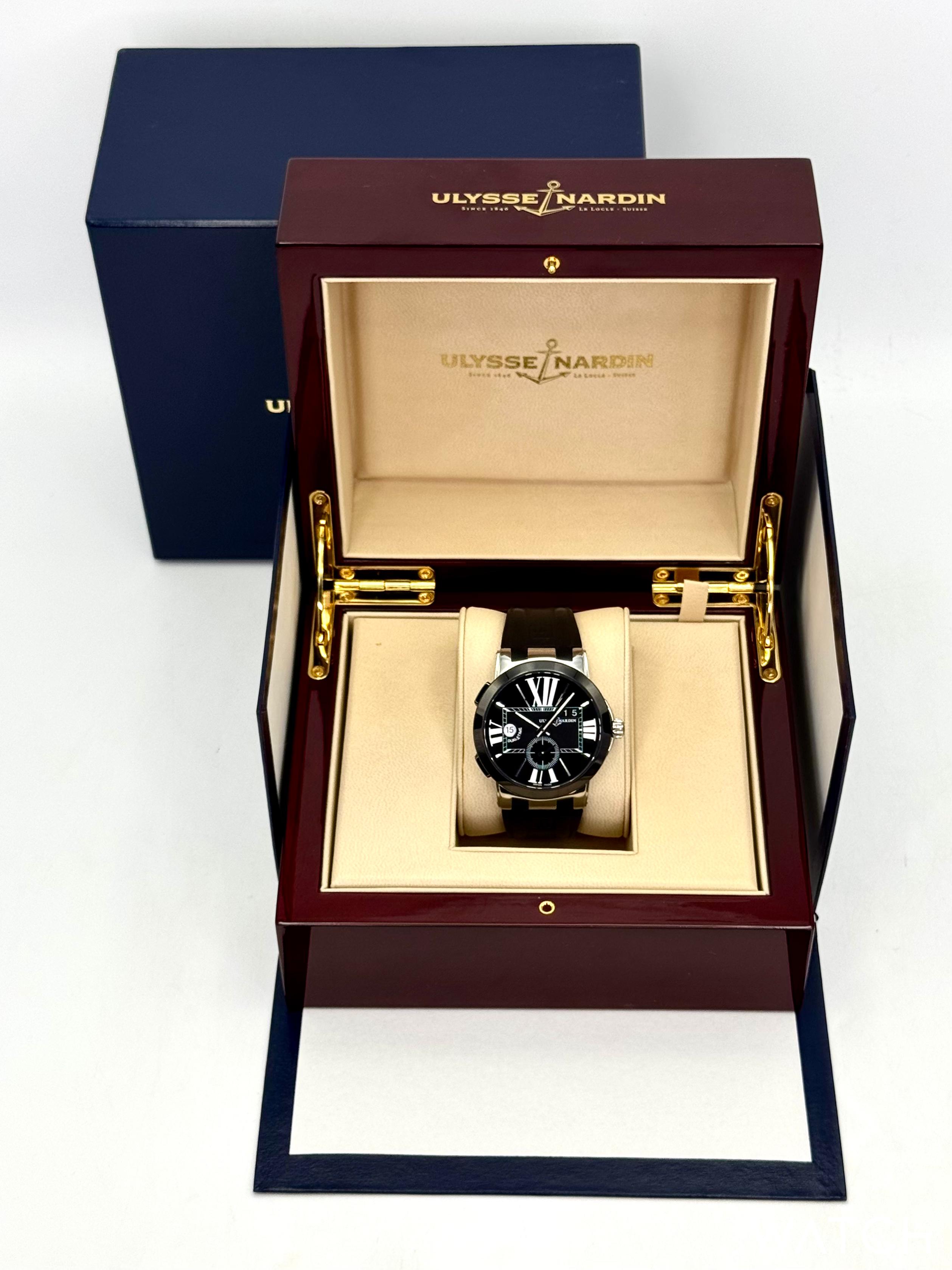 | Ulysse Nardin Executive Dual Time Steel & Ceramic Mens 43mm Watch B/P 243-00 jewelsintime (3006) |