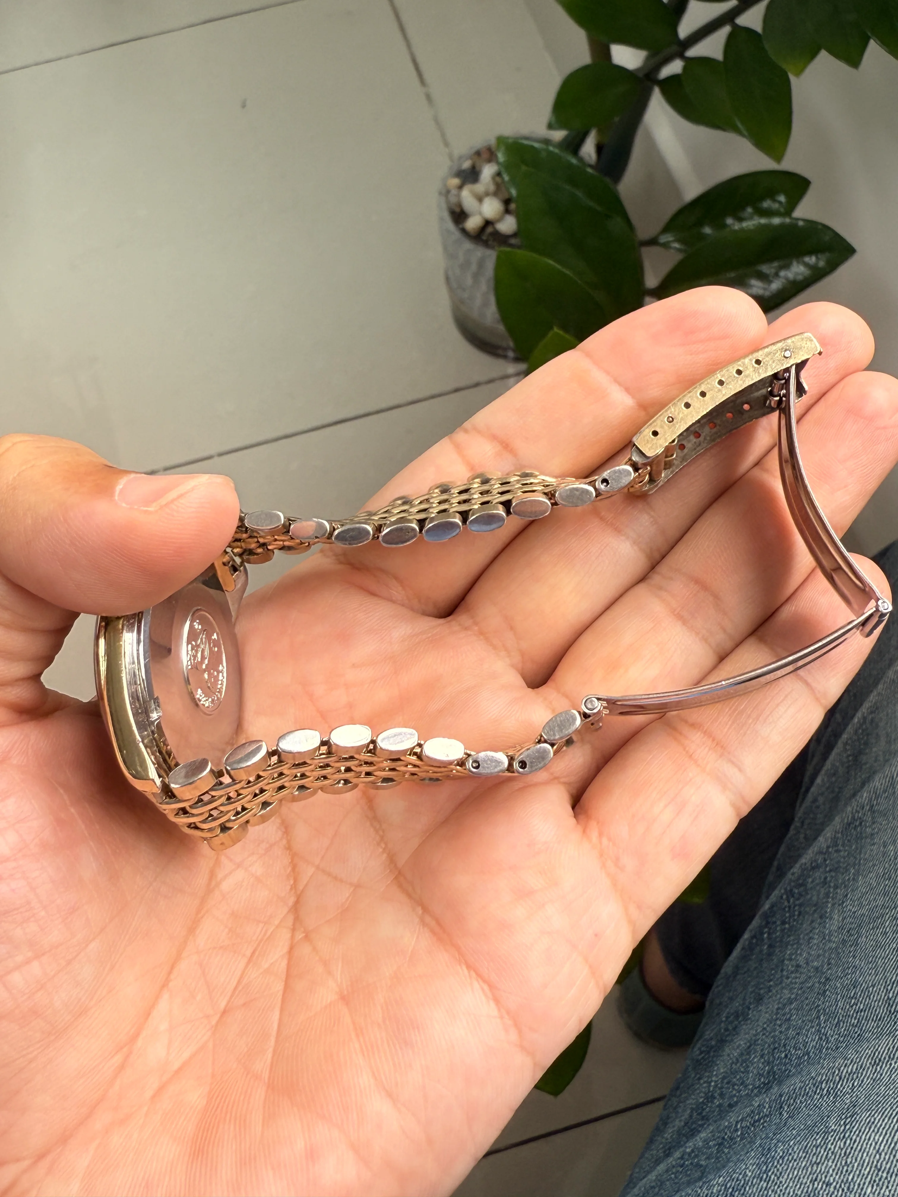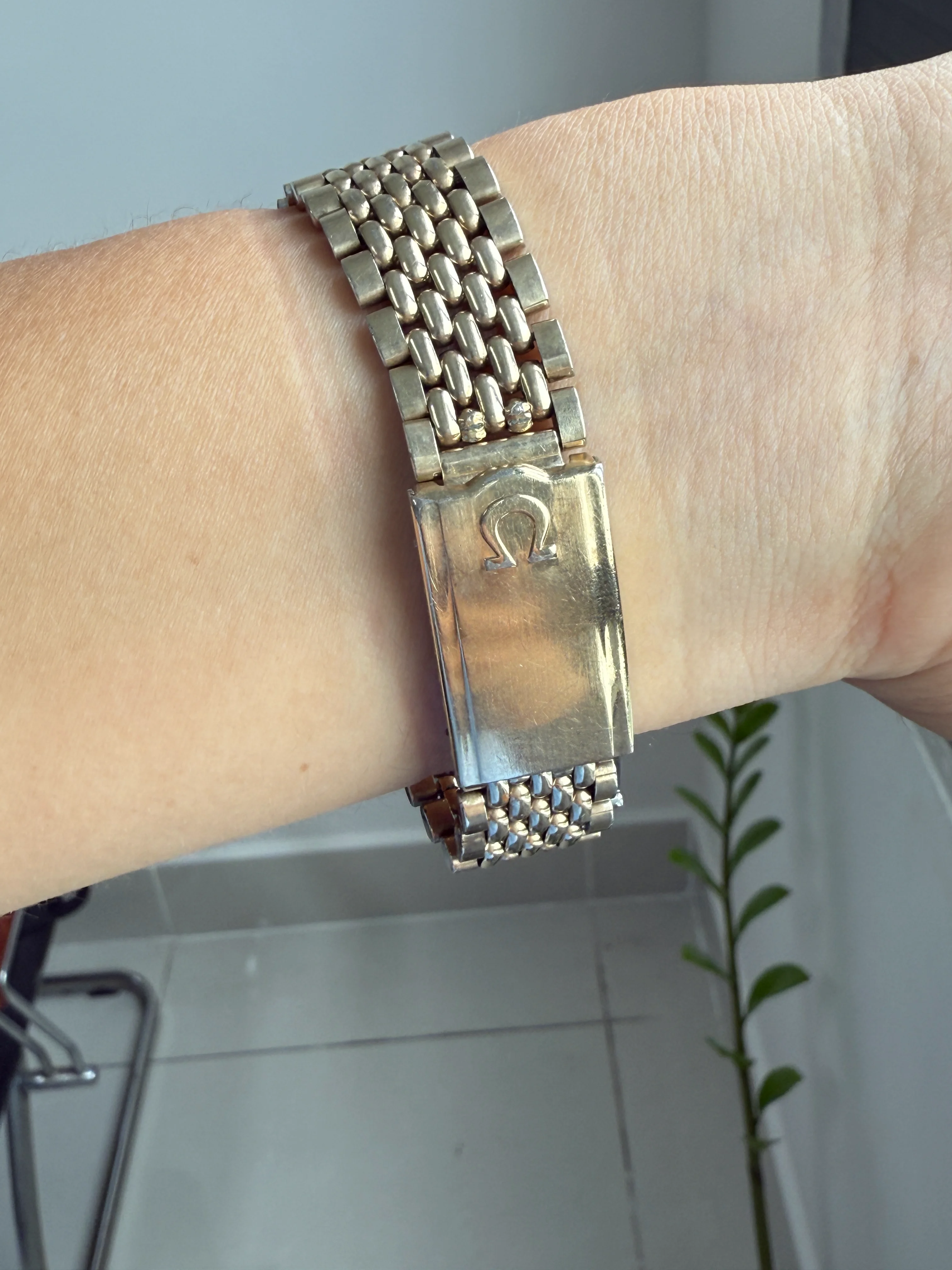 - Bracelet: 20 micron gold plated Omega bracelet reference 1052 with 11 end-links good condition; triple fold clasp featuring micro-adjust with Omega logo.