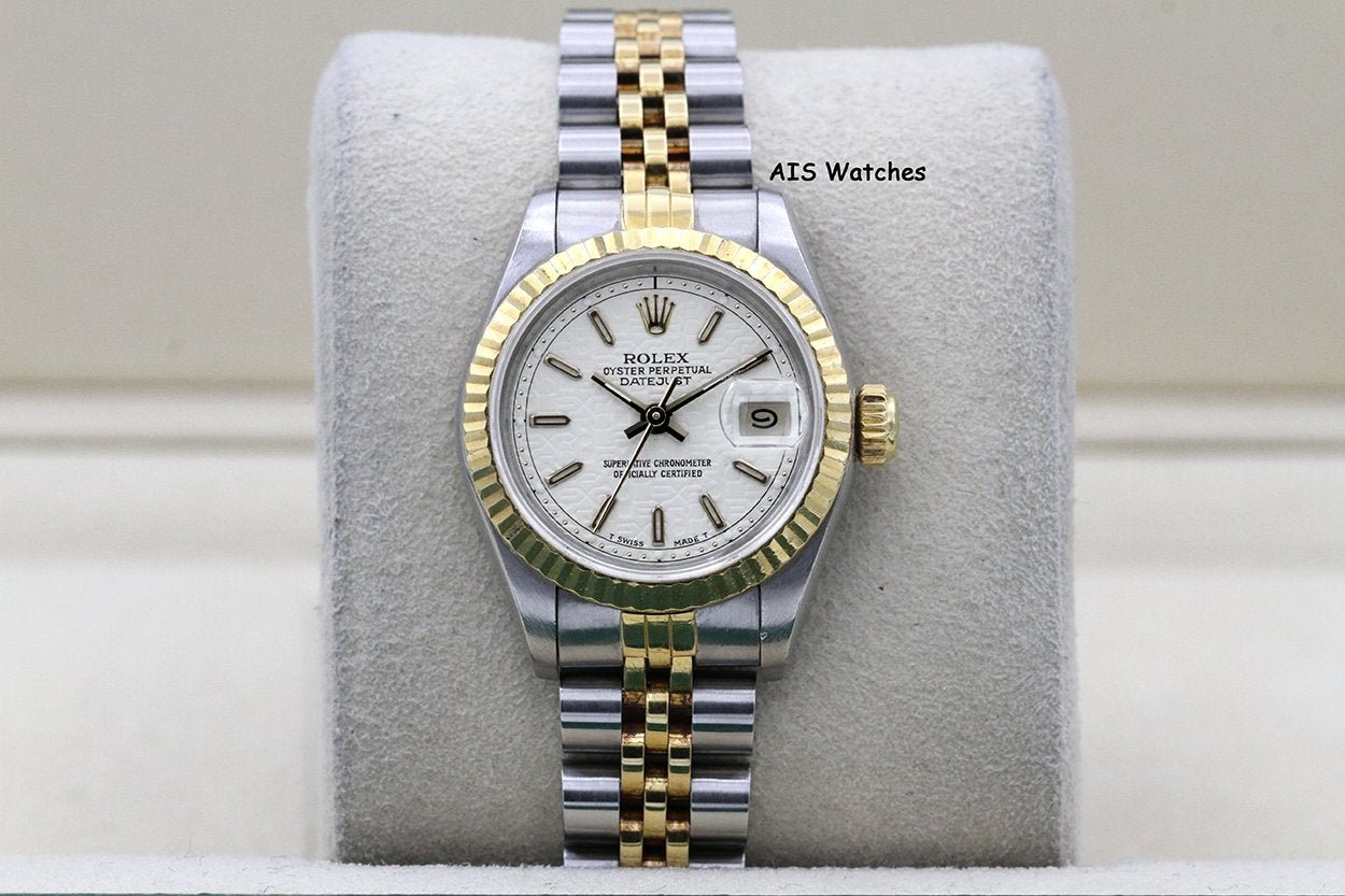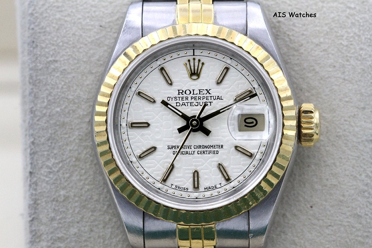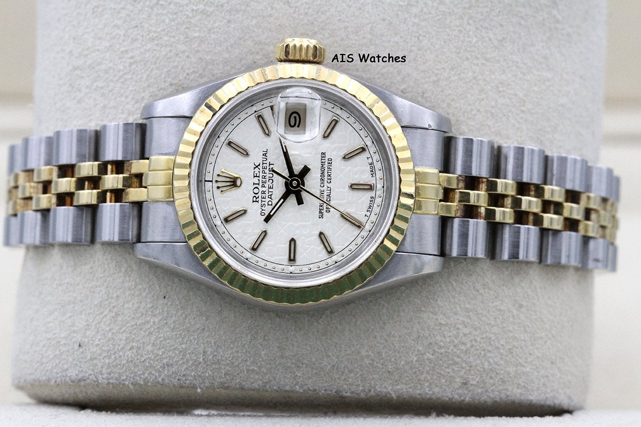 Up for sale is a Rolex Ladies Two-Tone DateJust 69173 White Computer Dial 26MM R Serial - 1988 with Papers ONLY. The timepiece is in excellent condition with minimal bracelet stretch.