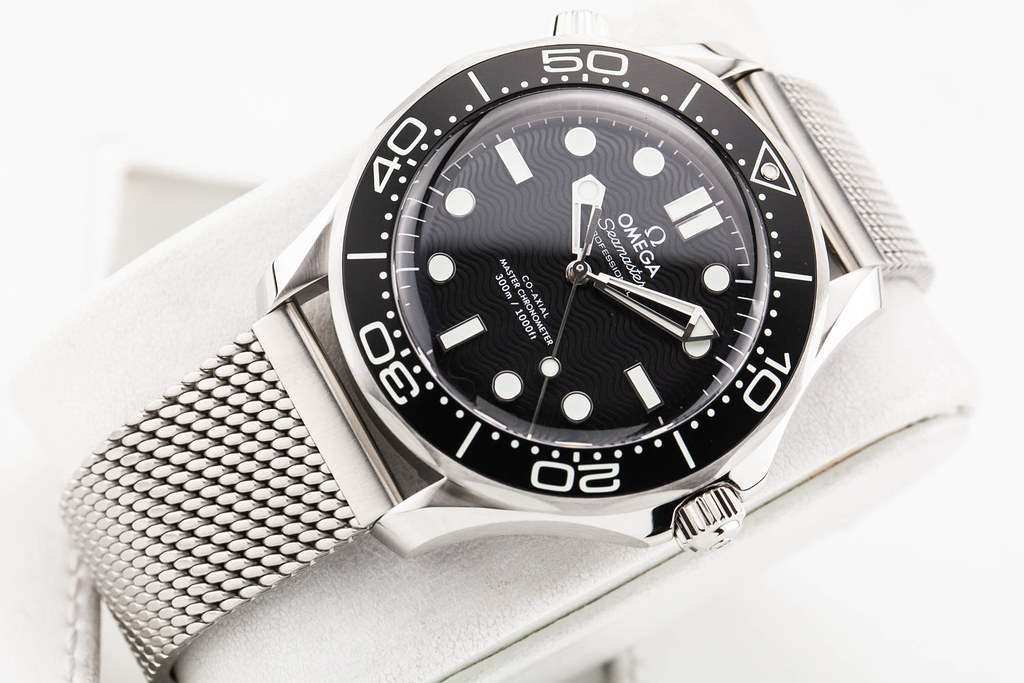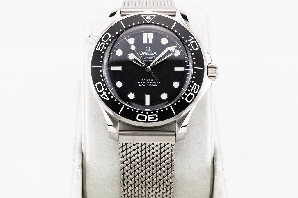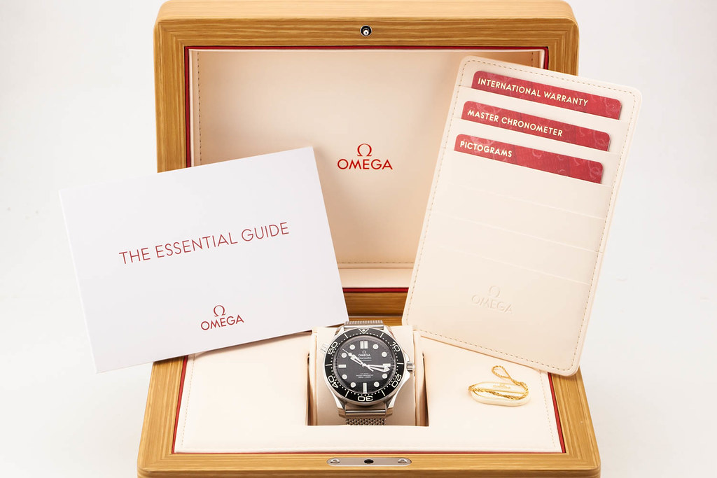 Up for sale is a brand new Omega Seamaster 300M 42mm Black Aluminum Dial & Bezel on Mesh Bracelet, reference # 210.30.42.20.01.010. It comes complete with all boxes, papers, booklet, hang tag and Omega Warranty Card dated December 2025.