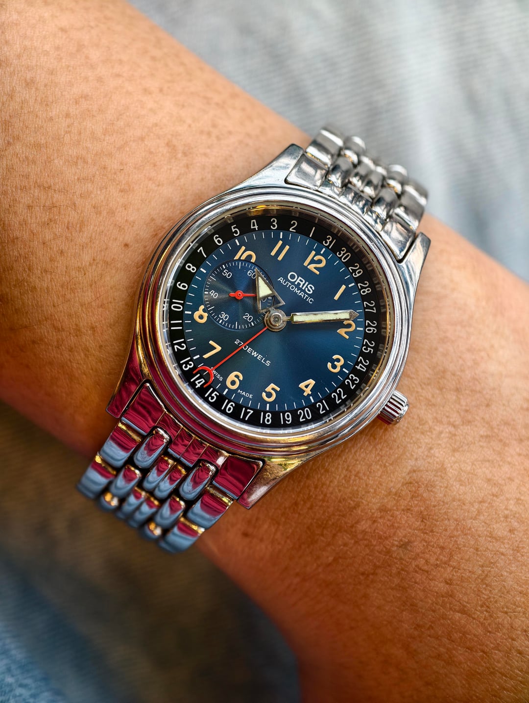 [WTS] Oris Reverse Pointer Date Small Seconds Ref. 7473 — Patina Indexes On Metallic Blue Dial — $999 (Serviced/Shipped/Tariff Covered)
