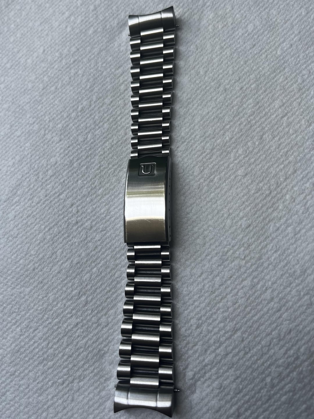 Selling an almost new condition (very faint hairline scratches) Uncle Straps (Previously Uncle Seiko) – US1450 Lincoln Bracelet (President bracelet) Black Bay 58/BB58. This will include the bracelet and all extra links, mounted pressure clasp, two solid end links & spring bars and will include the Uncle Straps conversion kit to use the OEM Tudor Clasp. $99 + shipped https://unclestraps.com/collections/black-bay-58/products/us1450-lincoln-bracelet-for-the-tudor-black-bay-58 https://unclestraps.com/collections/black-bay-58/products/conversion-kit-for-us1450-president-bracelet-tudor-black-bay-58 Thanks for looking. Please comment before messaging.