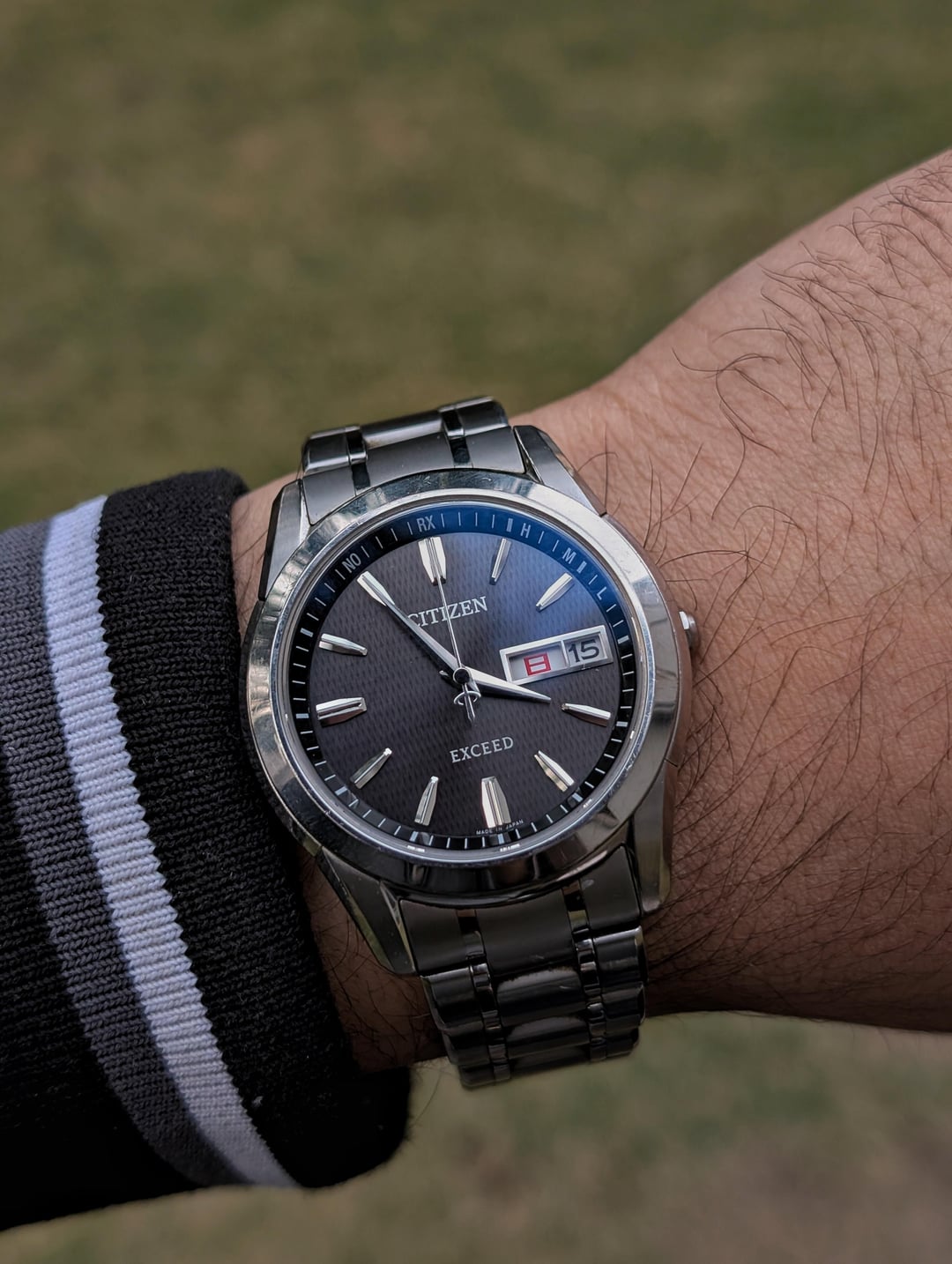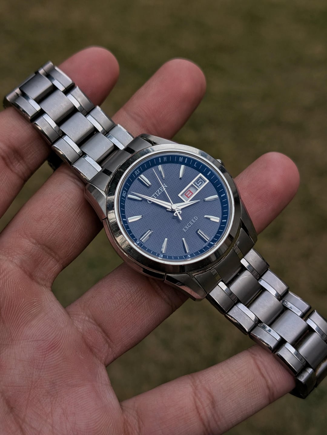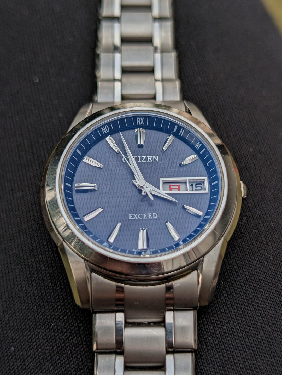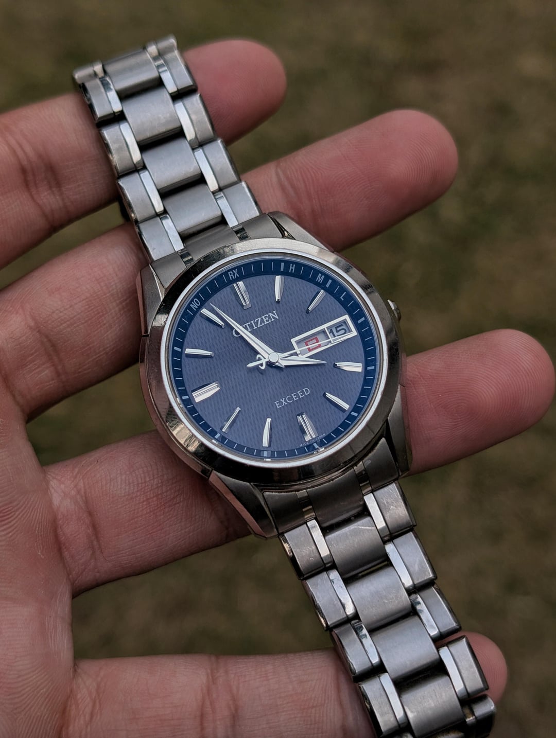 Greetings Watchexchange! Up for sale is a Citizen Exceed EBG74-2923. These JDM Citizen Exceeds are the poor man's Chronomaster, featuring extremely similar cases and bracelets with Zaratsu, and citizen's signature AR coated sapphire. They feature perpetual calendars, and eco drive. The main distinguishing factor is that these JDM Exceeds are not high accuracy, but rather radio controlled. The watch is made of titanium, with beautiful zaratsu polish all around. The bracelet has links for a 7" wrist at max. The watch measures approximately 37mm in diameter. [Timestamp](https://imgur.com/a/U1nV9GN) The watch is priced to sell at $329, paid via Zelle or Wise and shipped via UPS. Please note that the price may include a surcharge for remote zip codes, and that the watch will be shipped out within 3 to 5 business days of your payment. Be sure to reach out to me if you have any questions or require additional photographs or information. I entertain requests for custom timestamps. Thanks for looking!
