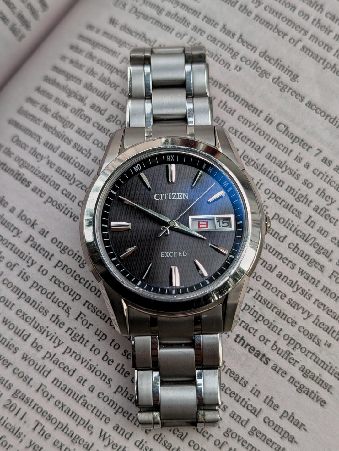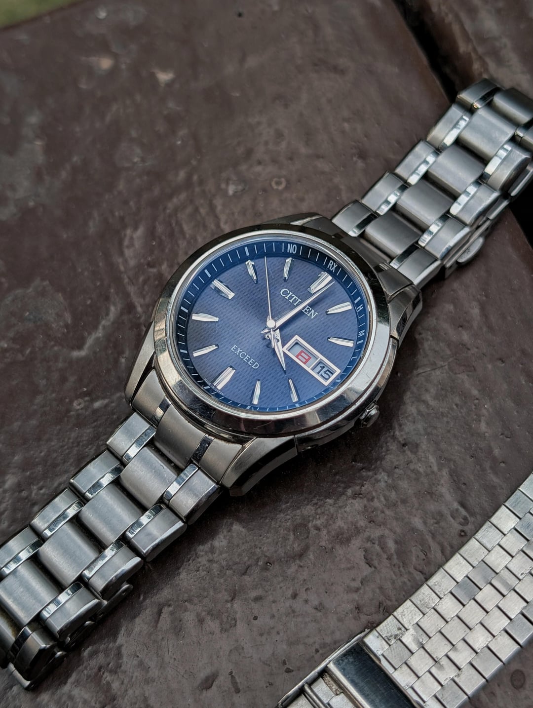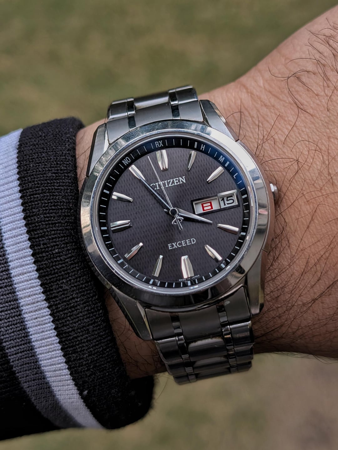 Greetings Watchexchange! Up for sale is a Citizen Exceed EBG74-2923. These JDM Citizen Exceeds are the poor man's Chronomaster, featuring extremely similar cases and bracelets with Zaratsu, and citizen's signature AR coated sapphire. They feature perpetual calendars, and eco drive. The main distinguishing factor is that these JDM Exceeds are not high accuracy, but rather radio controlled. The watch is made of titanium, with beautiful zaratsu polish all around. The bracelet has links for a 7" wrist at max. The watch measures approximately 37mm in diameter. [Timestamp](https://imgur.com/a/U1nV9GN) The watch is priced to sell at $329, paid via Zelle or Wise and shipped via UPS. Please note that the price may include a surcharge for remote zip codes, and that the watch will be shipped out within 3 to 5 business days of your payment. Be sure to reach out to me if you have any questions or require additional photographs or information. I entertain requests for custom timestamps. Thanks for looking!