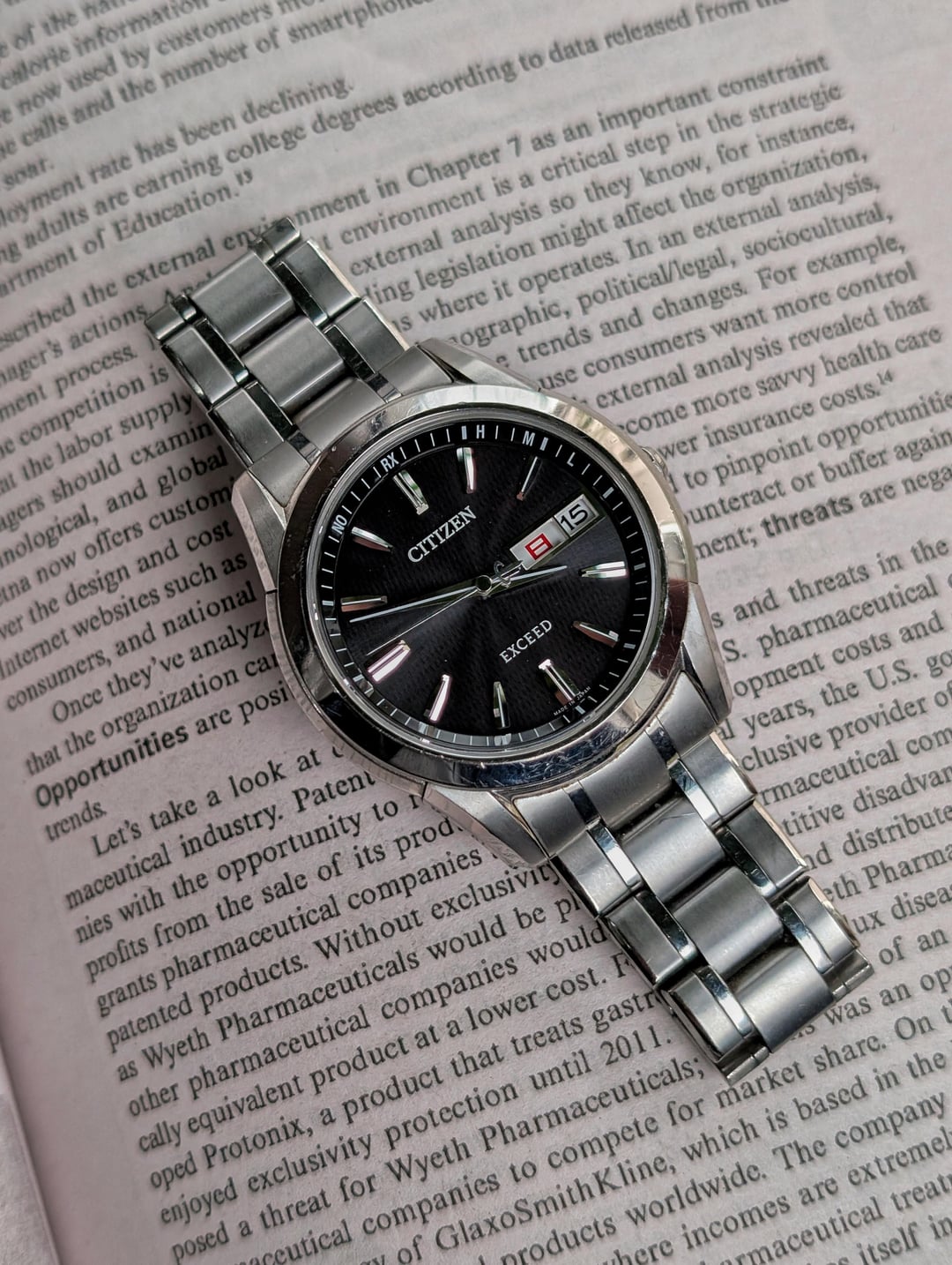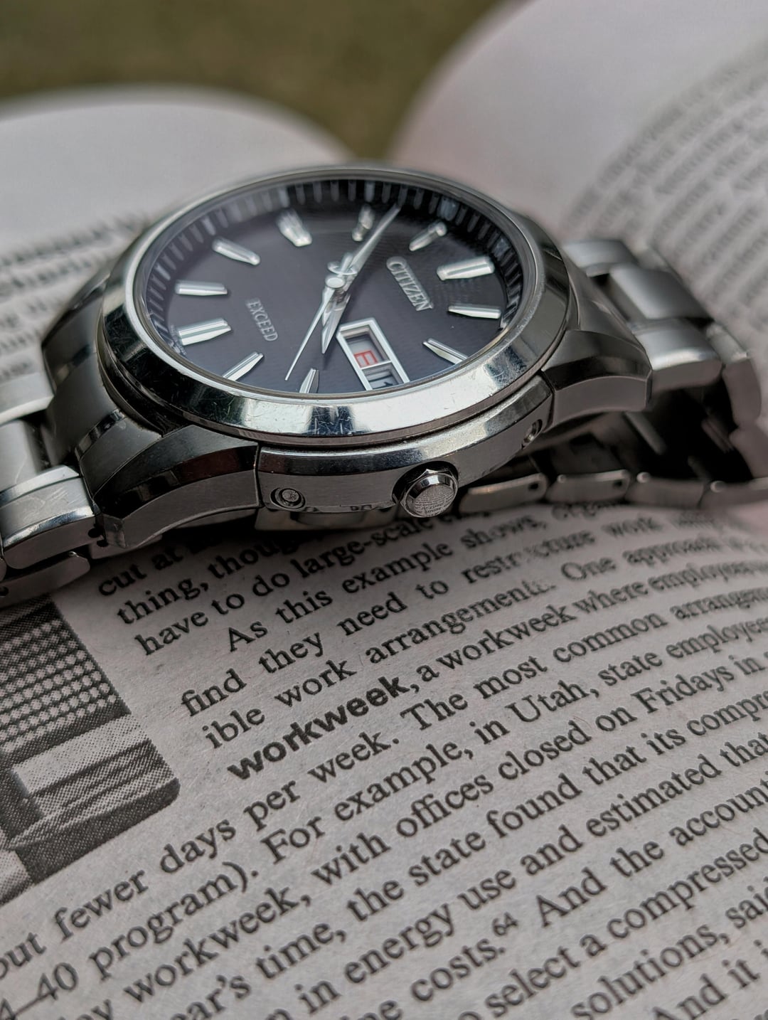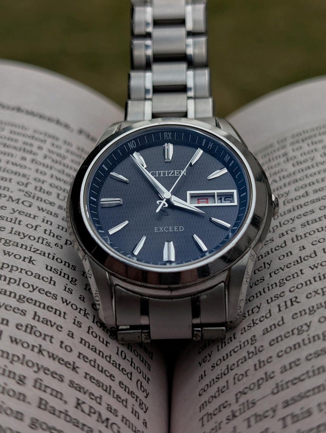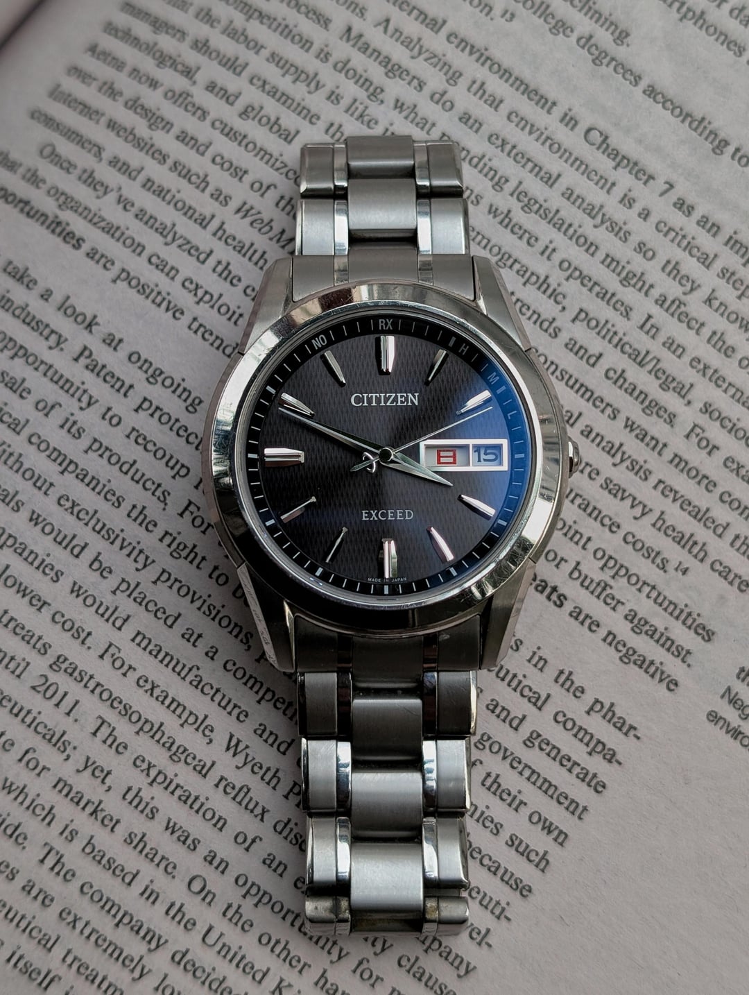 Greetings Watchexchange! Up for sale is a Citizen Exceed EBG74-2923. These JDM Citizen Exceeds are the poor man's Chronomaster, featuring extremely similar cases and bracelets with Zaratsu, and citizen's signature AR coated sapphire. They feature perpetual calendars, and eco drive. The main distinguishing factor is that these JDM Exceeds are not high accuracy, but rather radio controlled. The watch is made of titanium, with beautiful zaratsu polish all around. The bracelet has links for a 7" wrist at max. The watch measures approximately 37mm in diameter. [Timestamp](https://imgur.com/a/U1nV9GN) The watch is priced to sell at $329, paid via Zelle or Wise and shipped via UPS. Please note that the price may include a surcharge for remote zip codes, and that the watch will be shipped out within 3 to 5 business days of your payment. Be sure to reach out to me if you have any questions or require additional photographs or information. I entertain requests for custom timestamps. Thanks for looking!