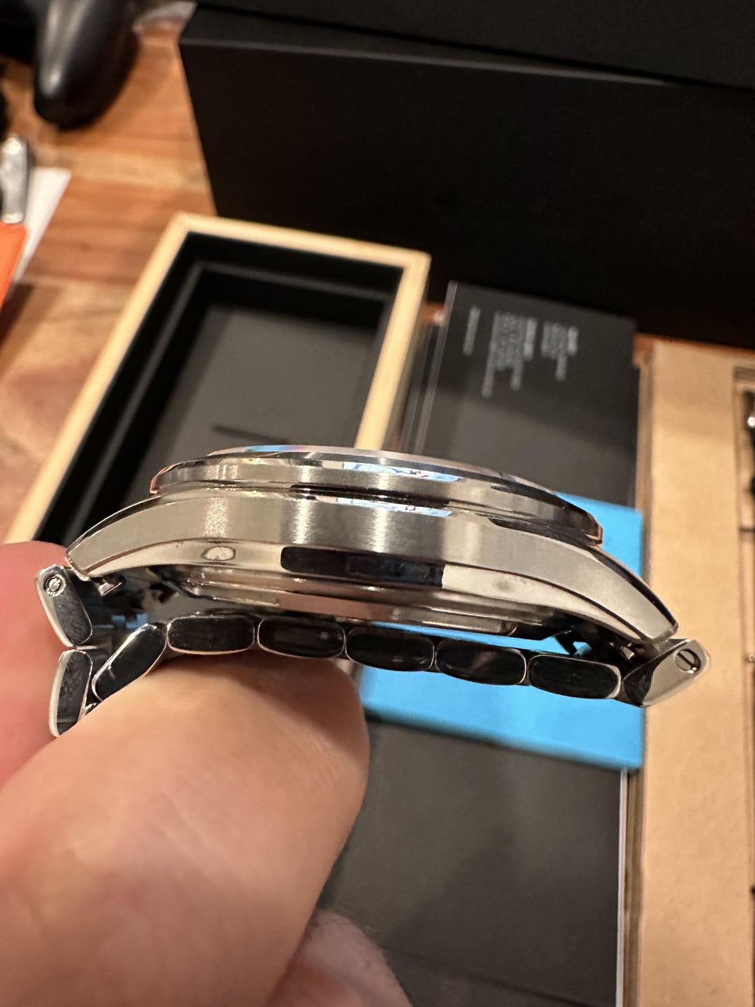 READ ME: Payment only via Zelle, Cashapp, or Apple Pay. I have 28 swaps in r/knife_swap and 250+ transactions on r/gunaccessoriesforsale Not shipping internationally Limited Edition #21/50. I got this watch on here but a bought a crap ton of other watches and this doesn’t really fit my rotation. Maybe some hairlines on the back of the case but can’t really see anything else. Comes with full box set, all links and an extra leather strap set. $1100 shipped