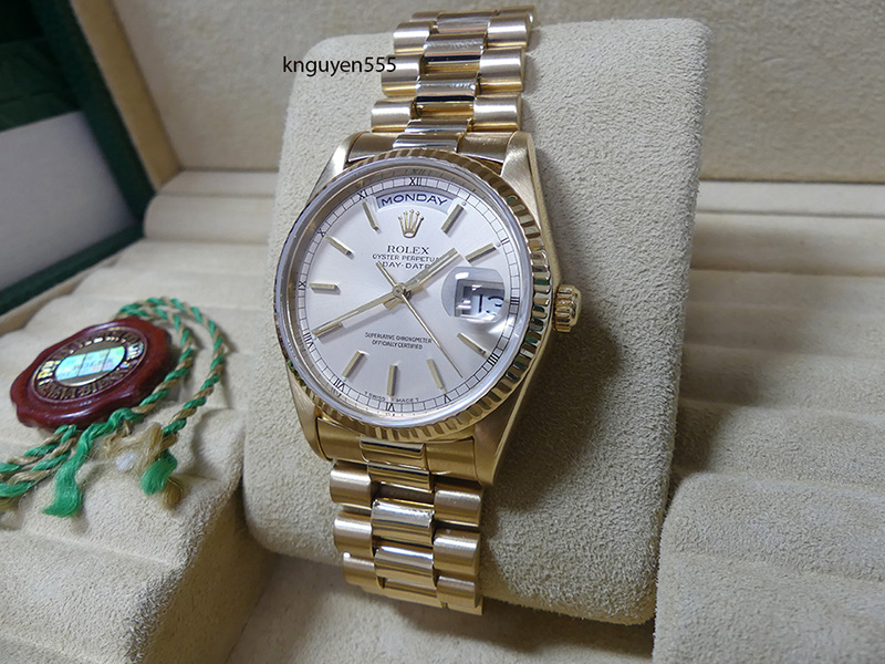 | Rolex Day-Date 36 18238, Yellow Gold, Blue Dial, President Bracelet watch_chest (1692) |