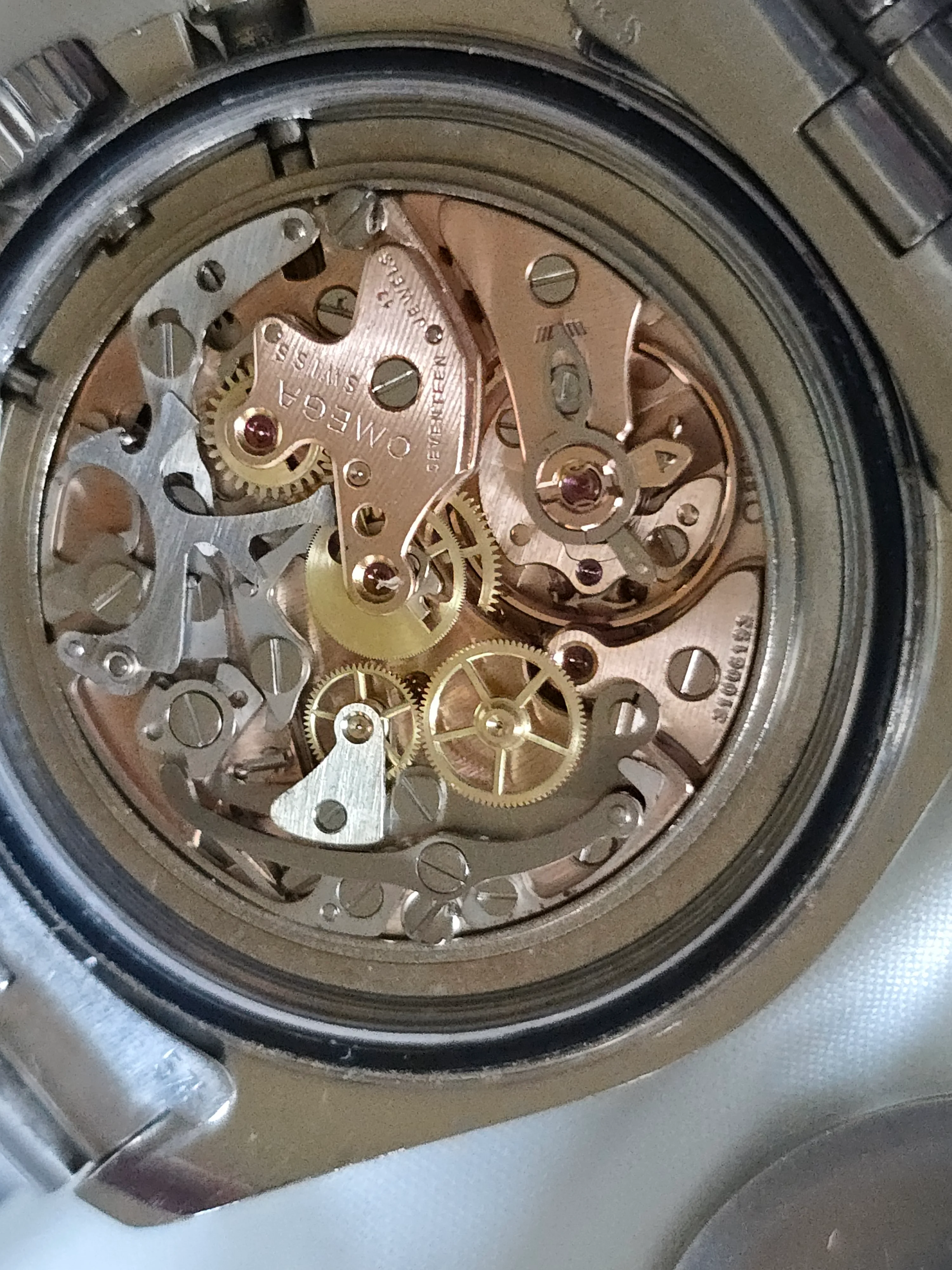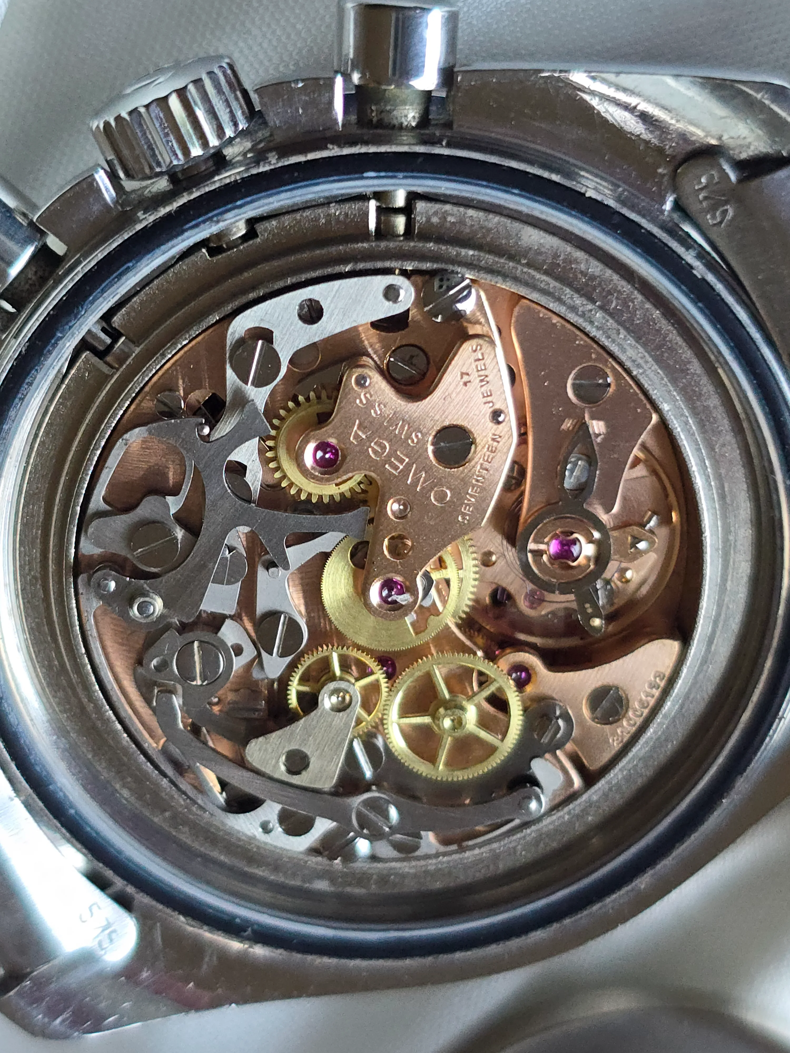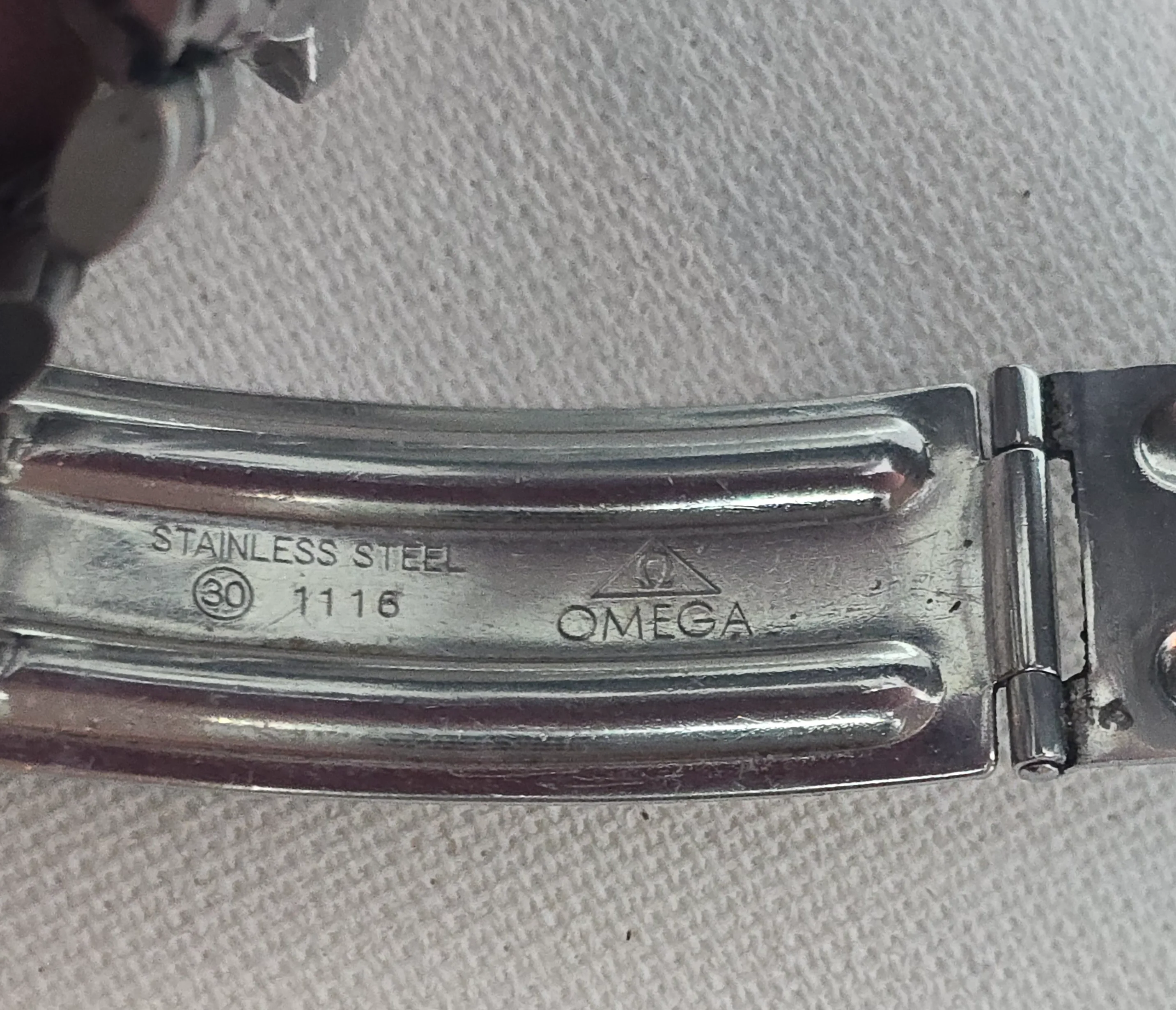 The case doesn’t look unpolished but has strong edges with no gouges or nicks. The crown may have been replaced in a prior service.