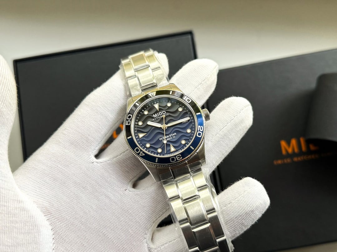 NEW 2024 - MIDO OCEAN STAR 39 / RELIEF DIAL / MECHANICS MIDO - M026.907.11.041.00 Box, papers. On sale is the most beautiful new product from Mido 2024. Model from the Ocean Star 39 collection. Reference M026.907.11.041.00. Two-color, relief dial, water resistance 200 meters, power reserve 80 hours. For the first time on the market, as usual at the best price for you. $599