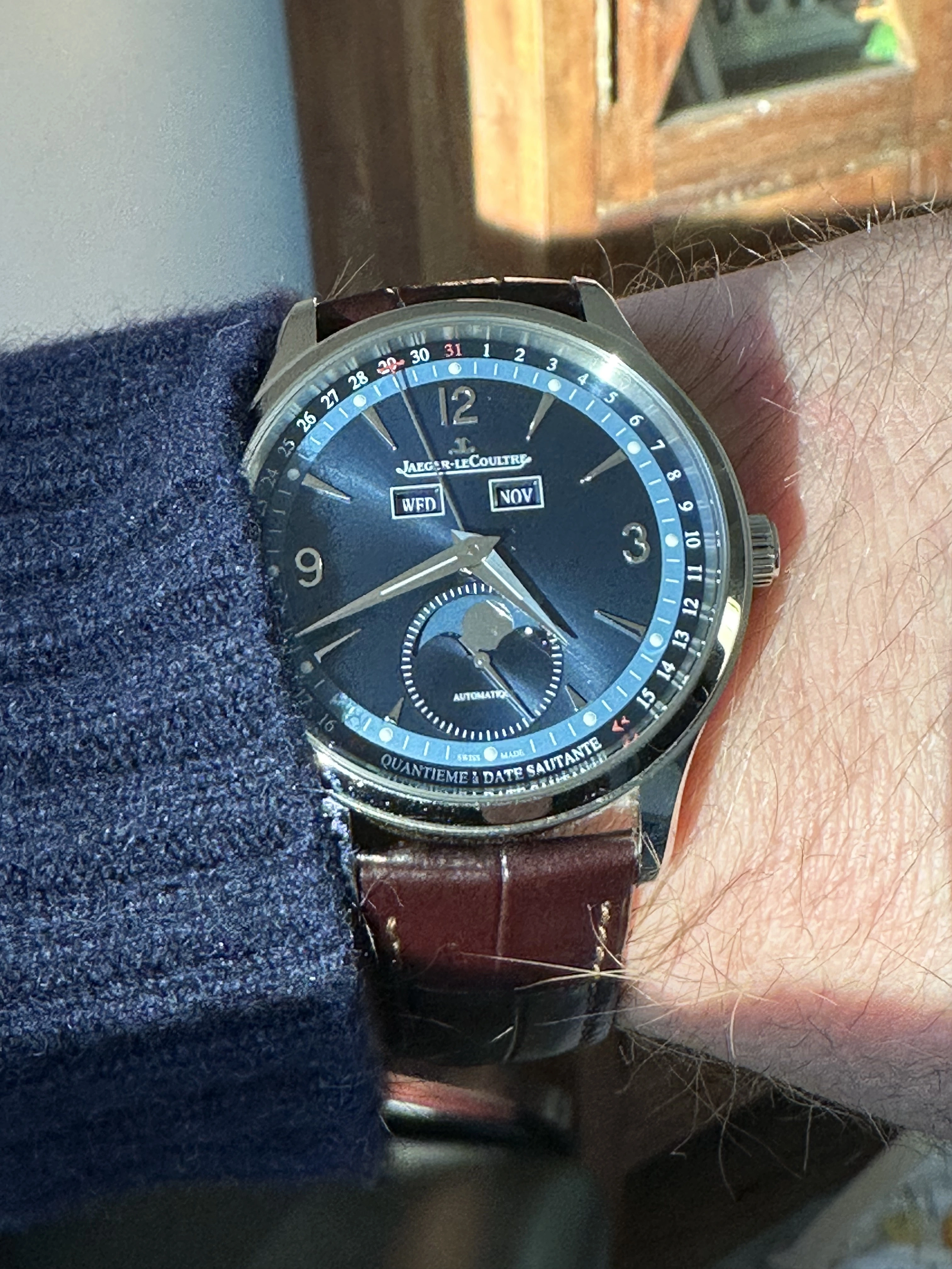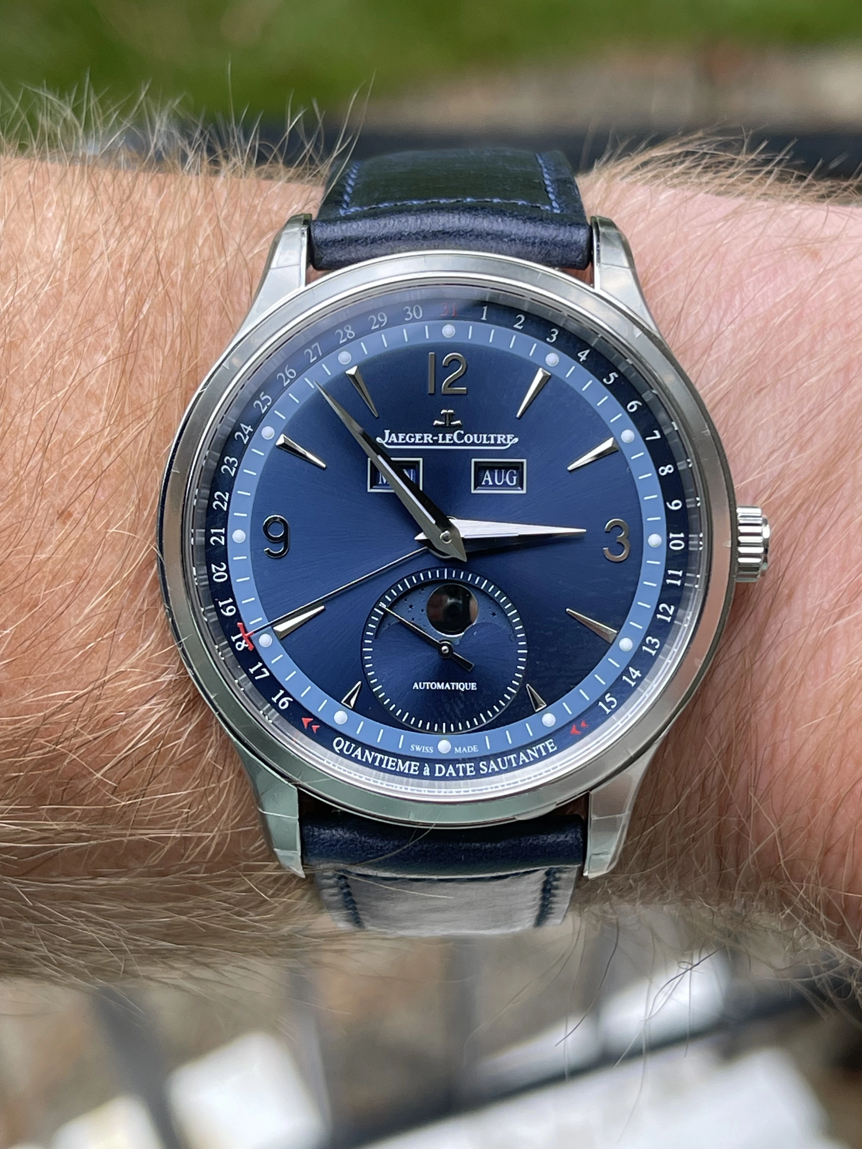 Up for sale is my JLC Master Calendar in Bucherer Blue which is a limited edition of 800 worldwide. I purchased the watch in 2022 directly from the manufacturer as I had been after the earlier rose gold version with meteorite dial. Obviously being discontinued, this was what was offered to me and I’m glad I took advantage.