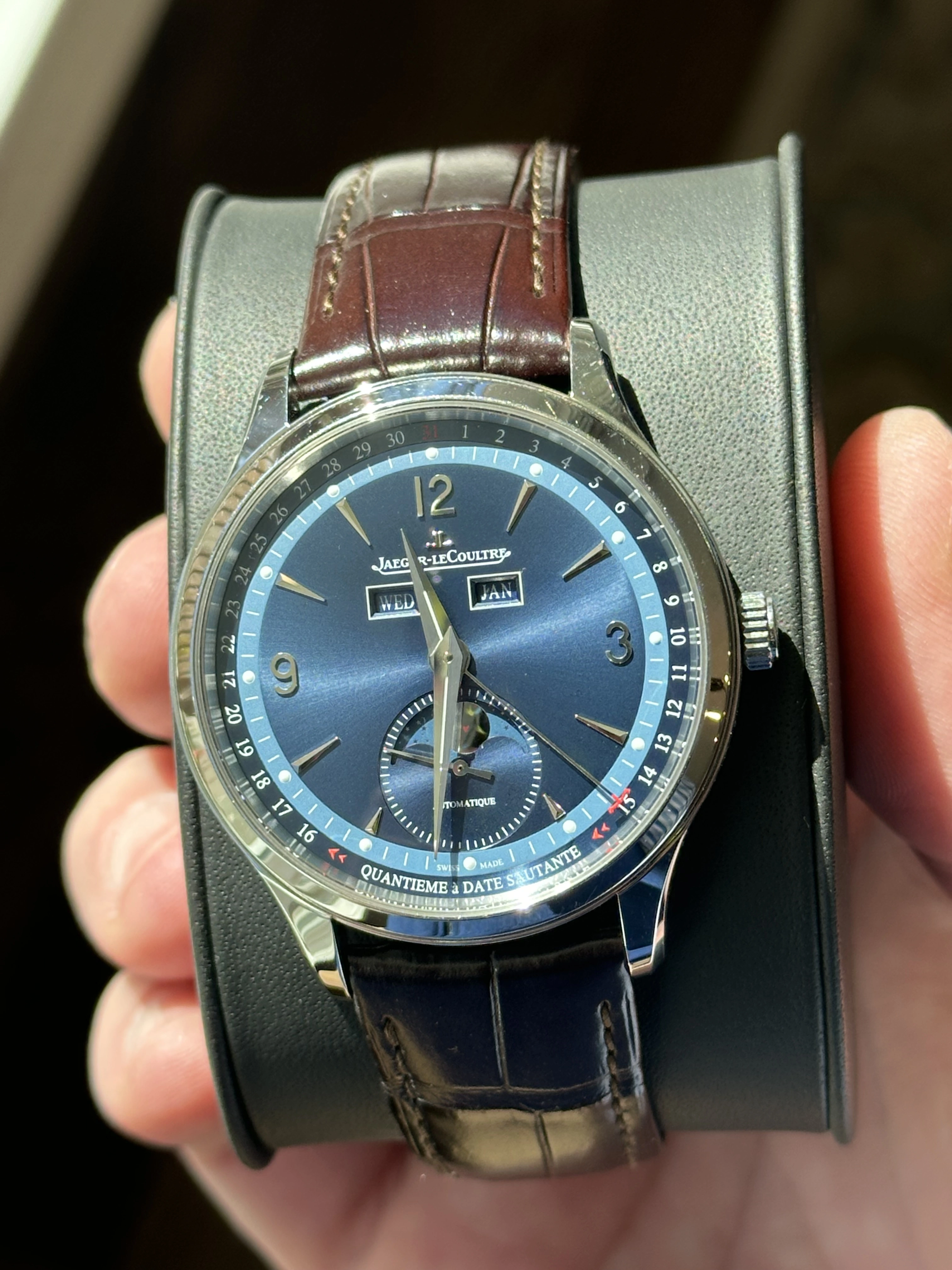Up for sale is my JLC Master Calendar in Bucherer Blue which is a limited edition of 800 worldwide. I purchased the watch in 2022 directly from the manufacturer as I had been after the earlier rose gold version with meteorite dial. Obviously being discontinued, this was what was offered to me and I’m glad I took advantage.