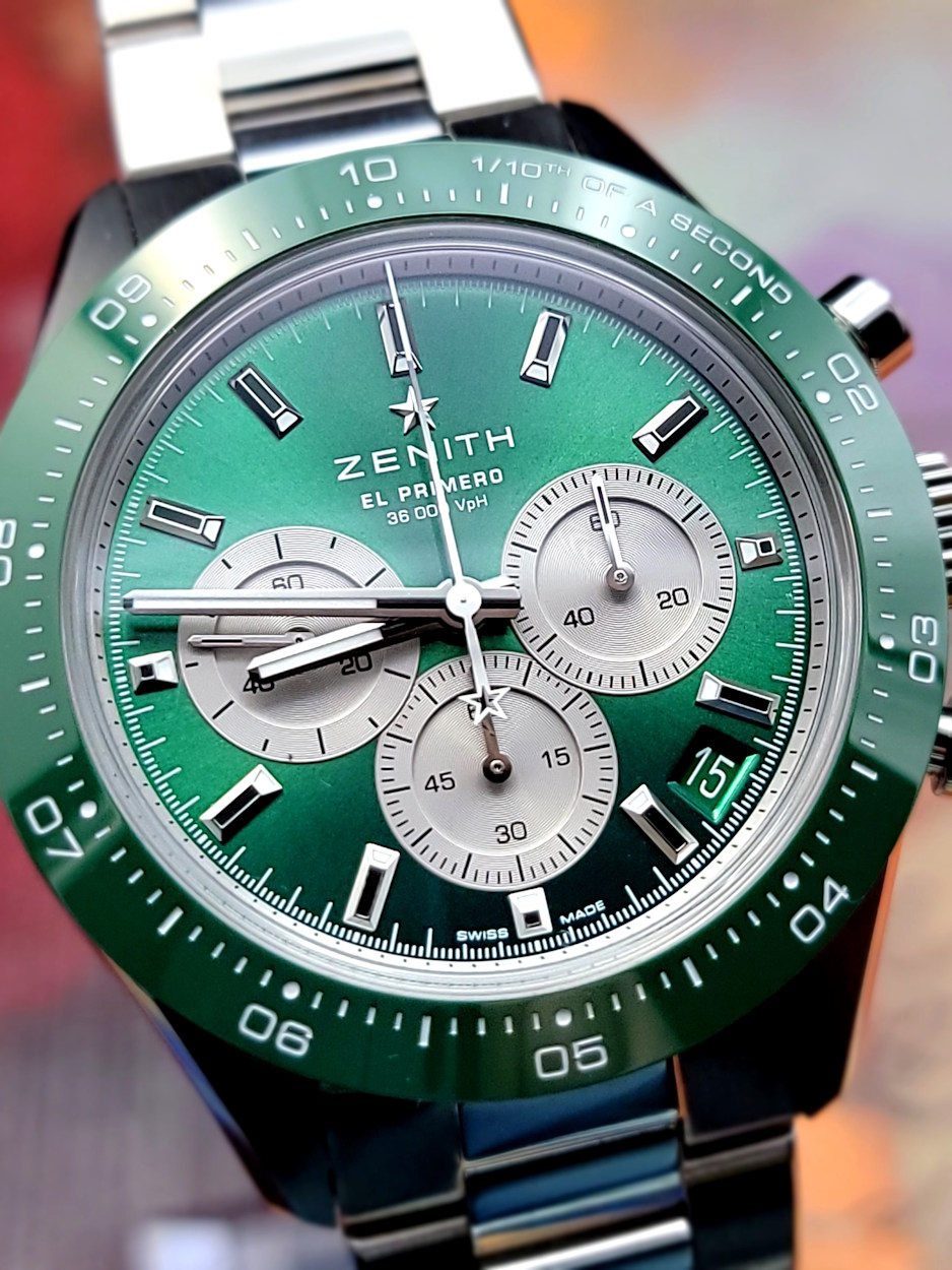 The Zenith Chronomaster Sport is celebrated for its innovative design and exceptional performance. Its eye-catching green dial and sporty character make it a versatile piece suitable for both casual outings and formal events.