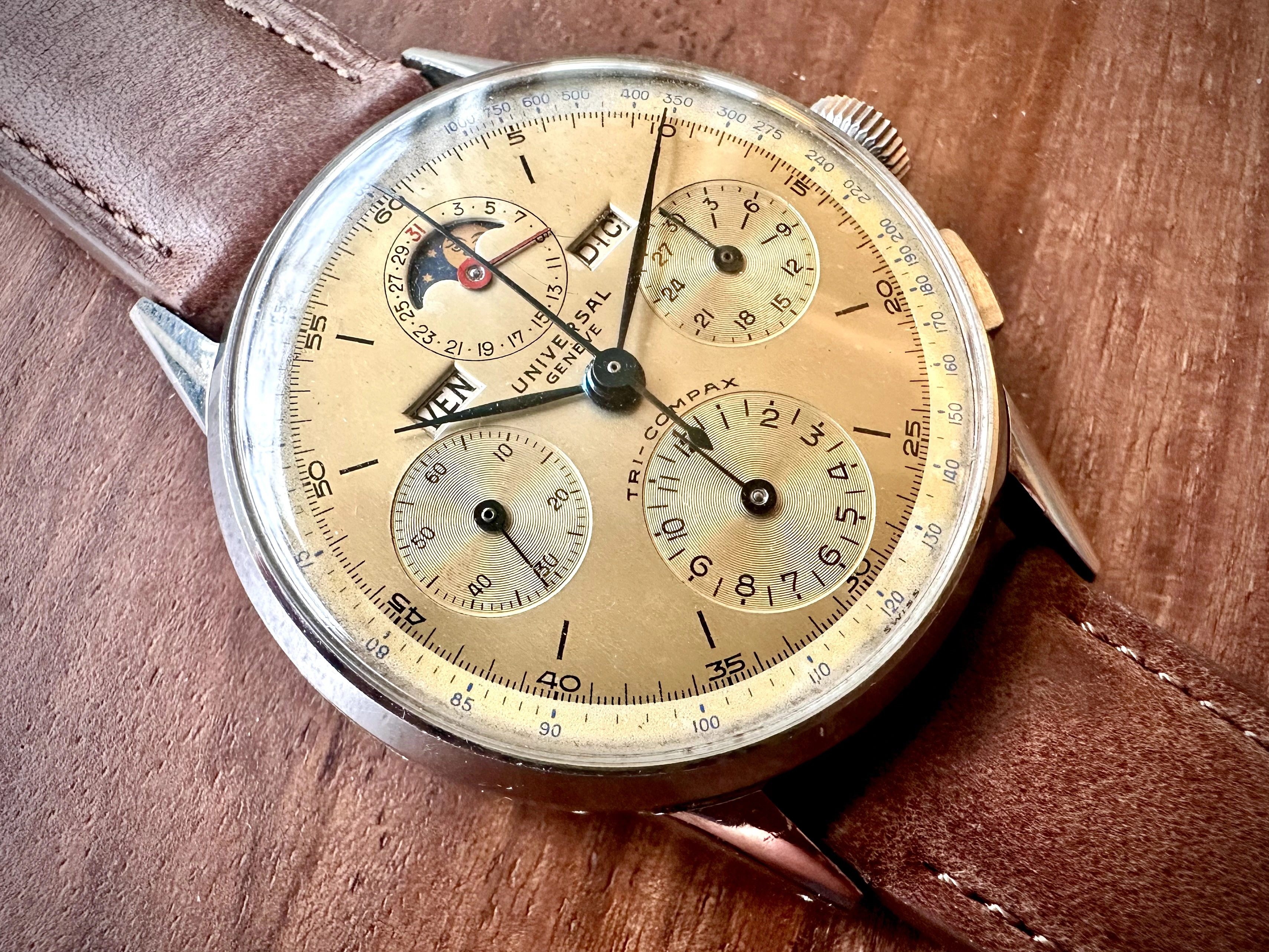 I’m selling a Universal Genève Compax, reference 22536, 37mm, in absolutely perfect overall condition.