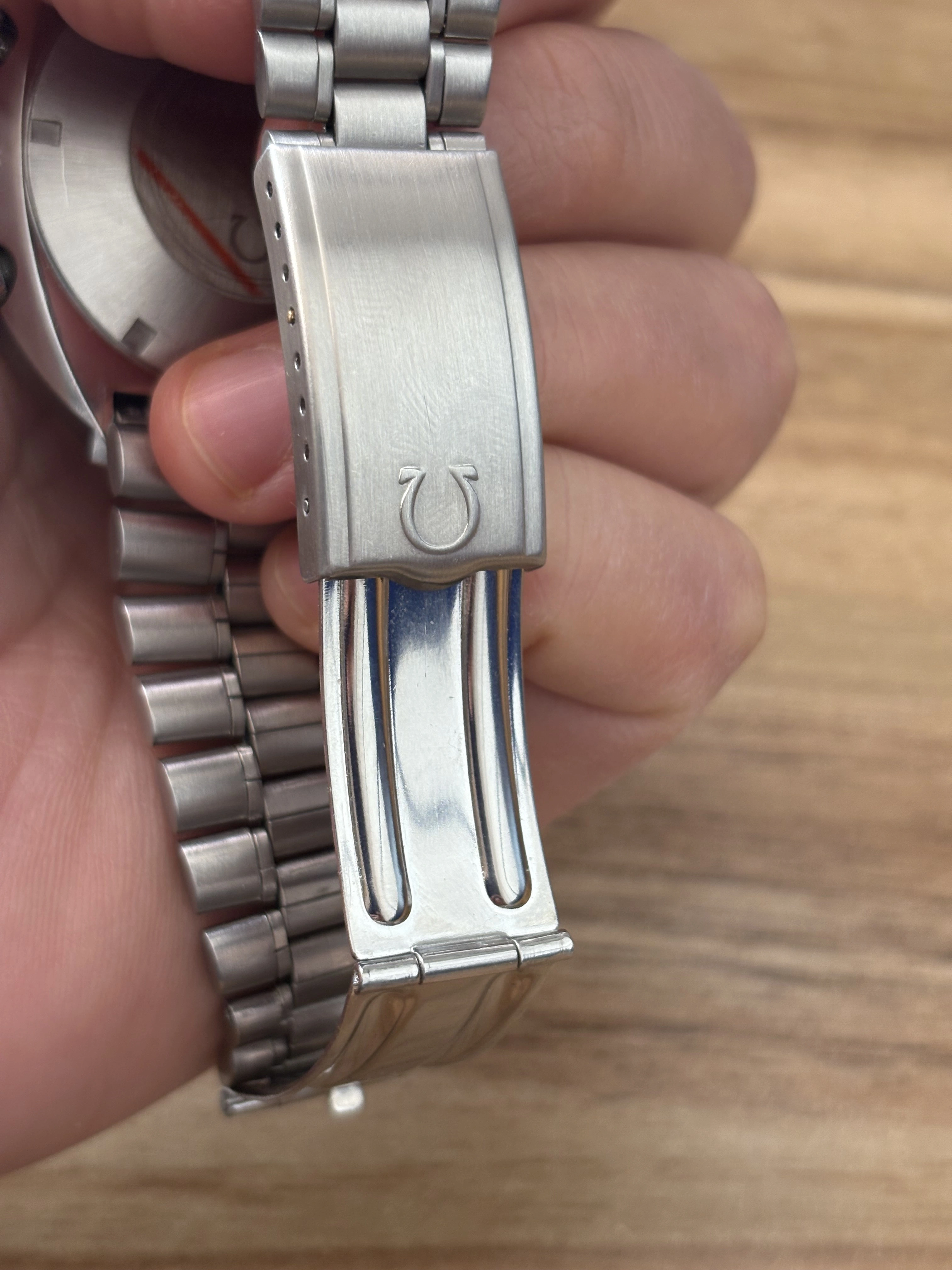 Let us start from the case which is unpolished keeping the original sharp shape of the early examples, the caseback is perfect. Glass has no defects.