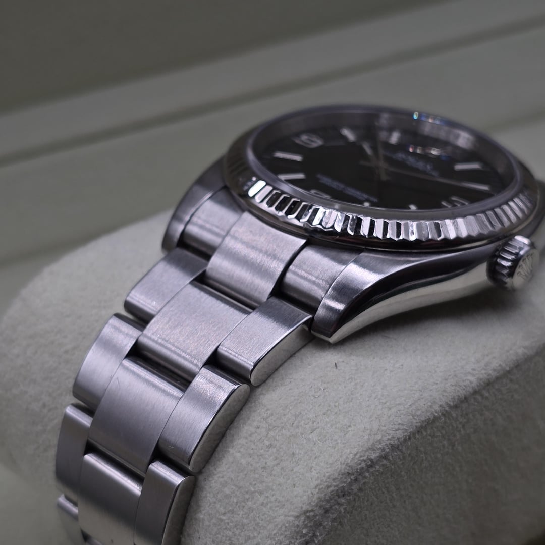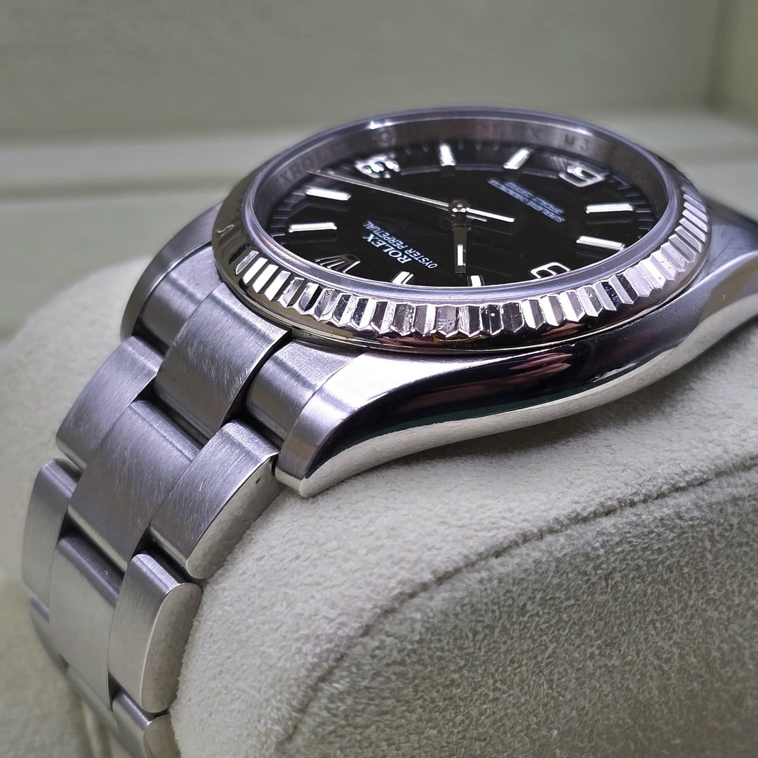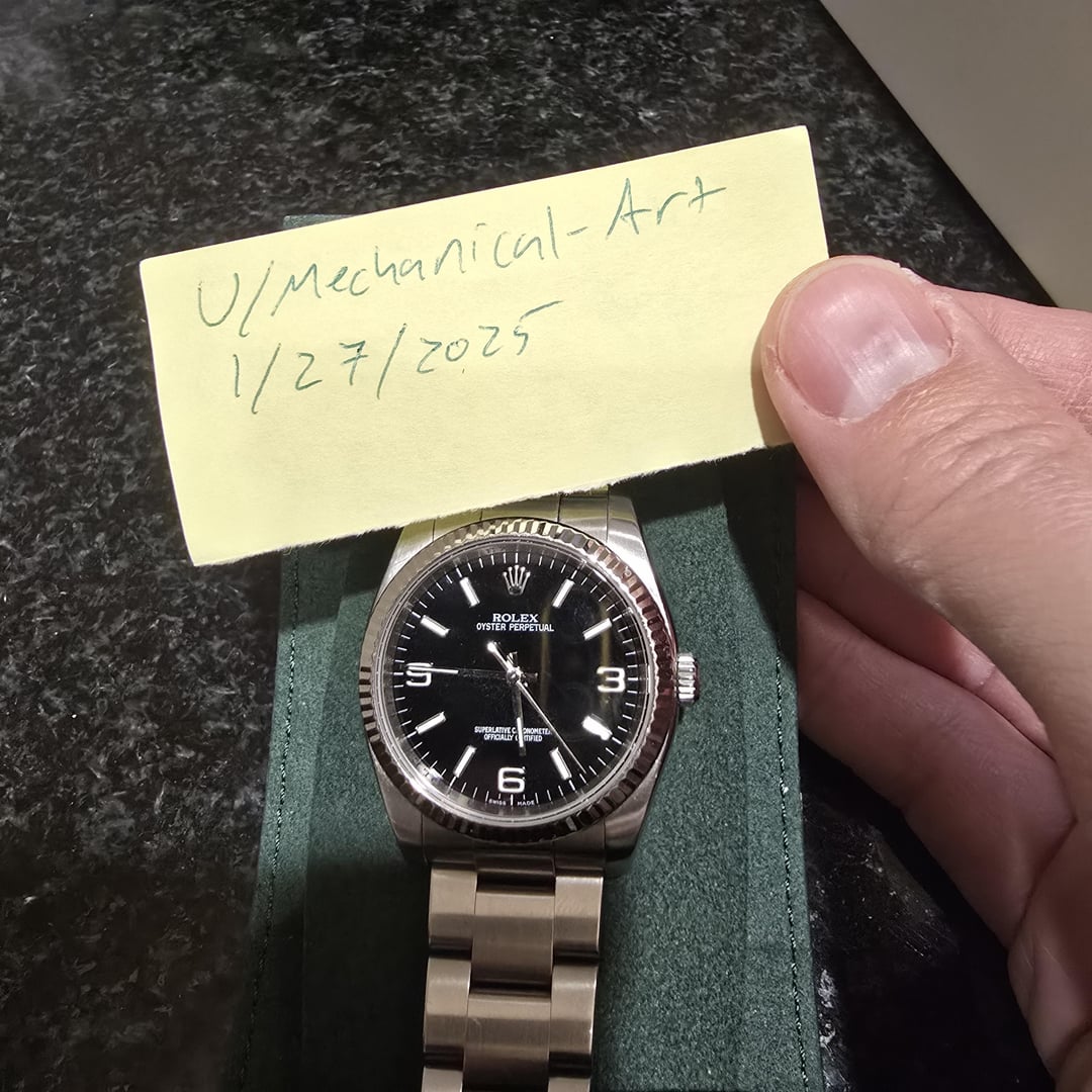 For Sale here is a very cool variant of the 36mm Oyster Perpetual. This is an M serial, so \~2007 production. They weren't made for very long with the white gold bezel, and were soon discontinued for the 116000 reference with the solid steel bezel. This timepiece was service at Rolex Service center in 2023, and so is still under the RSC Warranty! It does also come with a genuine steel bezel, if you want to change up the look. Asking price is $5,500 **All watches sold by us come with a 1 year warranty on movement, case, and bracelet functionality.** We have been trading luxury timepieces since 2017 and operate out of the southeast United States. Accepted forms of payment are wire transfer, trades for other watches, or crypto +2%. Turn your digital coins and memes to IRL assets! After payment has been received, we ship out promptly using Fedex Priority Overnight, fully covered by a private insurance company. Packages are sent to a Fedex Office or Ship Center to be held for pickup. Armored carrier or personal delivery will be arranged for pieces valued over $150k. More pictures or video available on request! Plenty of references available, so deal with confidence! We pride ourselves on customer service, communication, and will do what you need to make this a comfortable transaction. Most brands and models of luxury timepiece are accepted on trade. Rolex, Audemars Piguet, Patek Phillipe, Richard Mille, Hublot, Panerai, Zenith, Breitling, Vacheron Contantin, F/P. Journe, A. Lange & Sohne, etc. I can do cash either way or multi-watch trades for the right deal! Check out our other listings on mechanical-art . com