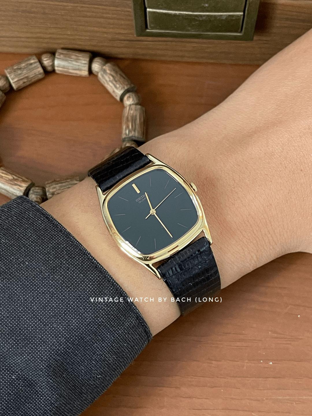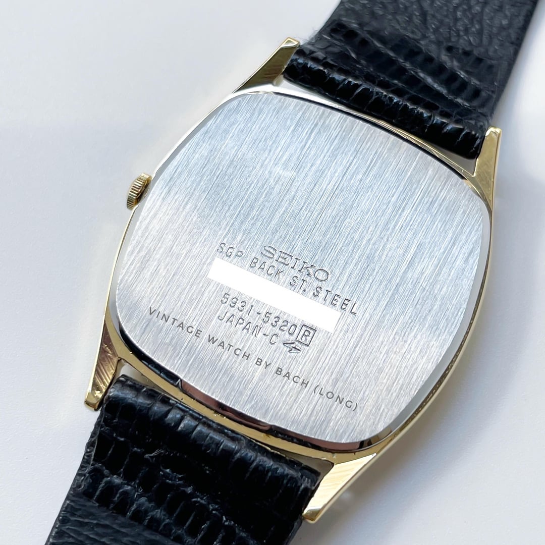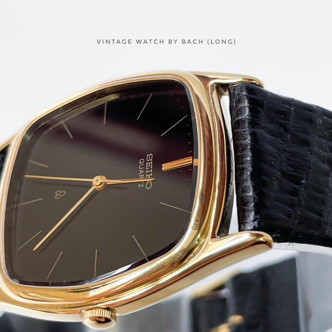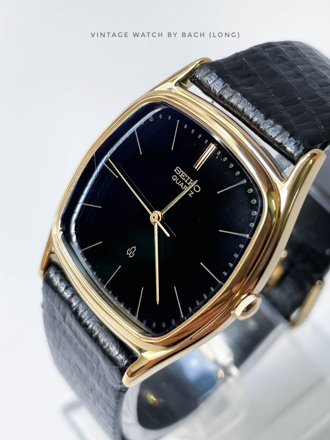 **Seiko Quartz 5931-5320 Black Tonneau/Tank Dial** **SPECIFICATIONS:** \- Japanese Seiko quartz tank watch excellent condition from April 1982. Classic and elegant style. \- Seiko caliber 5931 is a high grade analog quartz watch movement, accuracy ±15 seconds/month. This movement use for high-end Seiko watches at the time (Credor, Dolce,…) \- New handmade leather strap with original Seiko buckle. Fit wrist size upto 19.5cm. \- SGP Stainless steel case with gold color plated. Size 30mm (without crown), Lug to Lug: 37mm, Lug width: 18mm, Thickness: 5 mm. \- Minimal black dial, 3 gold stick hands with classic gold stick hour markers. Minimal and clean design. **CONDITION:** The watch is very well preserved for its age (See Photos). No obvious sign of wear. The crystal has some hairline scratches, barely visible. The original movement works well. Serviced and replaced with new battery. Recommend to avoid getting wet for vintage watch. The watch has been tested for 1 month and operate stablely before selling. **SHIPPING AND PAYMENT:** \- Worldwide shipping via UPS with tracking number (cost me 60-80 USD). 6-8 business days. \- Price 210 USD (free shipping). PayPal F&F or G&S (+4.4% transaction fee paid by buyer). \- Import duties, taxes and charges are not included in the item price or shipping charges. These charges are the buyer’s responsibility. Please check this prior to buying. These charges are normally collected by shipping company (UPS). For more beautiful watches, visit: Etsy store: [https://vintagewatchbybach.etsy.com](https://vintagewatchbybach.etsy.com) Chrono24: Please DM for product links. Ebay store: [https://www.ebay.com/usr/vintagewatch\_bybach](https://www.ebay.com/usr/vintagewatch_bybach) Instagram: [https://www.instagram.com/vintagewatch\_bybach](https://www.instagram.com/vintagewatch_bybach)