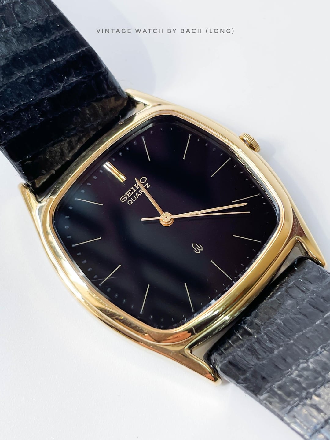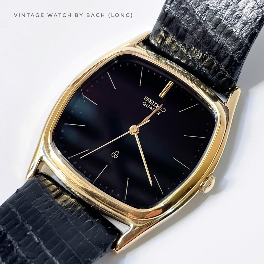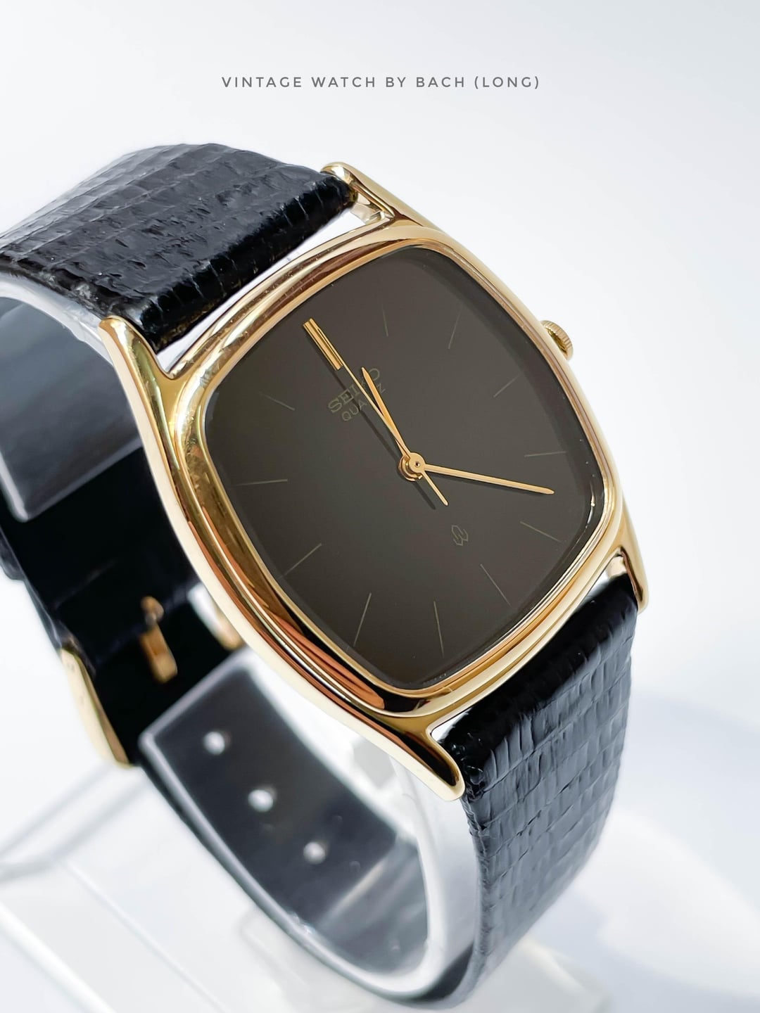 **Seiko Quartz 5931-5320 Black Tonneau/Tank Dial** **SPECIFICATIONS:** \- Japanese Seiko quartz tank watch excellent condition from April 1982. Classic and elegant style. \- Seiko caliber 5931 is a high grade analog quartz watch movement, accuracy ±15 seconds/month. This movement use for high-end Seiko watches at the time (Credor, Dolce,…) \- New handmade leather strap with original Seiko buckle. Fit wrist size upto 19.5cm. \- SGP Stainless steel case with gold color plated. Size 30mm (without crown), Lug to Lug: 37mm, Lug width: 18mm, Thickness: 5 mm. \- Minimal black dial, 3 gold stick hands with classic gold stick hour markers. Minimal and clean design. **CONDITION:** The watch is very well preserved for its age (See Photos). No obvious sign of wear. The crystal has some hairline scratches, barely visible. The original movement works well. Serviced and replaced with new battery. Recommend to avoid getting wet for vintage watch. The watch has been tested for 1 month and operate stablely before selling. **SHIPPING AND PAYMENT:** \- Worldwide shipping via UPS with tracking number (cost me 60-80 USD). 6-8 business days. \- Price 210 USD (free shipping). PayPal F&F or G&S (+4.4% transaction fee paid by buyer). \- Import duties, taxes and charges are not included in the item price or shipping charges. These charges are the buyer’s responsibility. Please check this prior to buying. These charges are normally collected by shipping company (UPS). For more beautiful watches, visit: Etsy store: [https://vintagewatchbybach.etsy.com](https://vintagewatchbybach.etsy.com) Chrono24: Please DM for product links. Ebay store: [https://www.ebay.com/usr/vintagewatch\_bybach](https://www.ebay.com/usr/vintagewatch_bybach) Instagram: [https://www.instagram.com/vintagewatch\_bybach](https://www.instagram.com/vintagewatch_bybach)