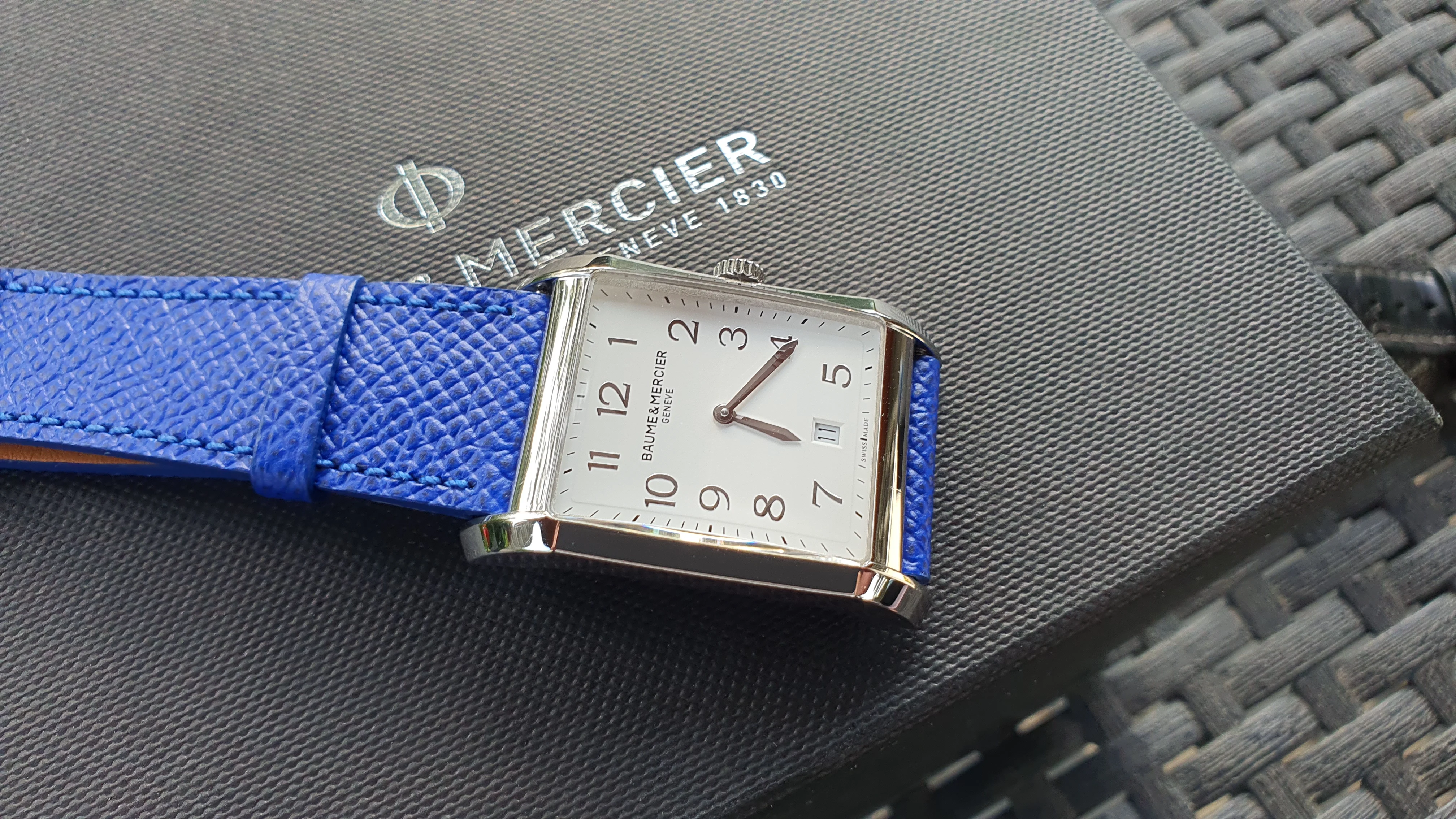 I fitted a very pretty Molequin bracelet royal blue grained calfskin, which I think suits it perfectly...