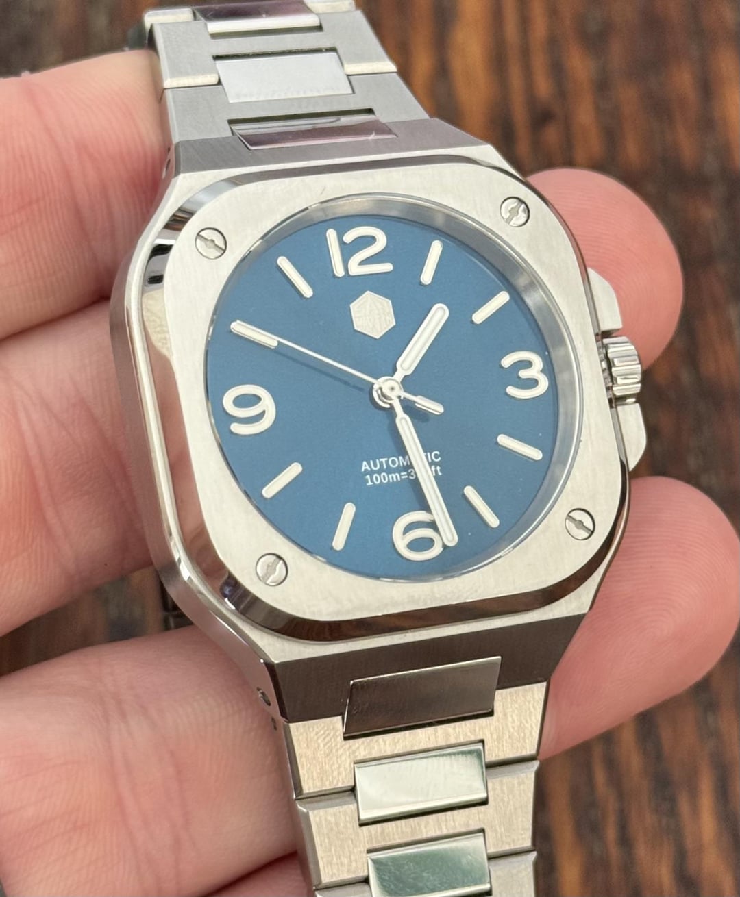 Pics : https://imgur.com/a/EEZZBuu Timestamp : https://imgur.com/a/jJwuKOu For sale is a San Martin BR05 homage with blue dial. I believe the reference number is SN0074. The watch is in great condition overall. Sale includes watch with all links (7.75”-8” wrist) and San Martin travel case. I’m asking $125 shipped CONUS. I accept Zelle of PayPal for well-established members. No trade offers please. Please comment if sending a chat or message. Thanks.