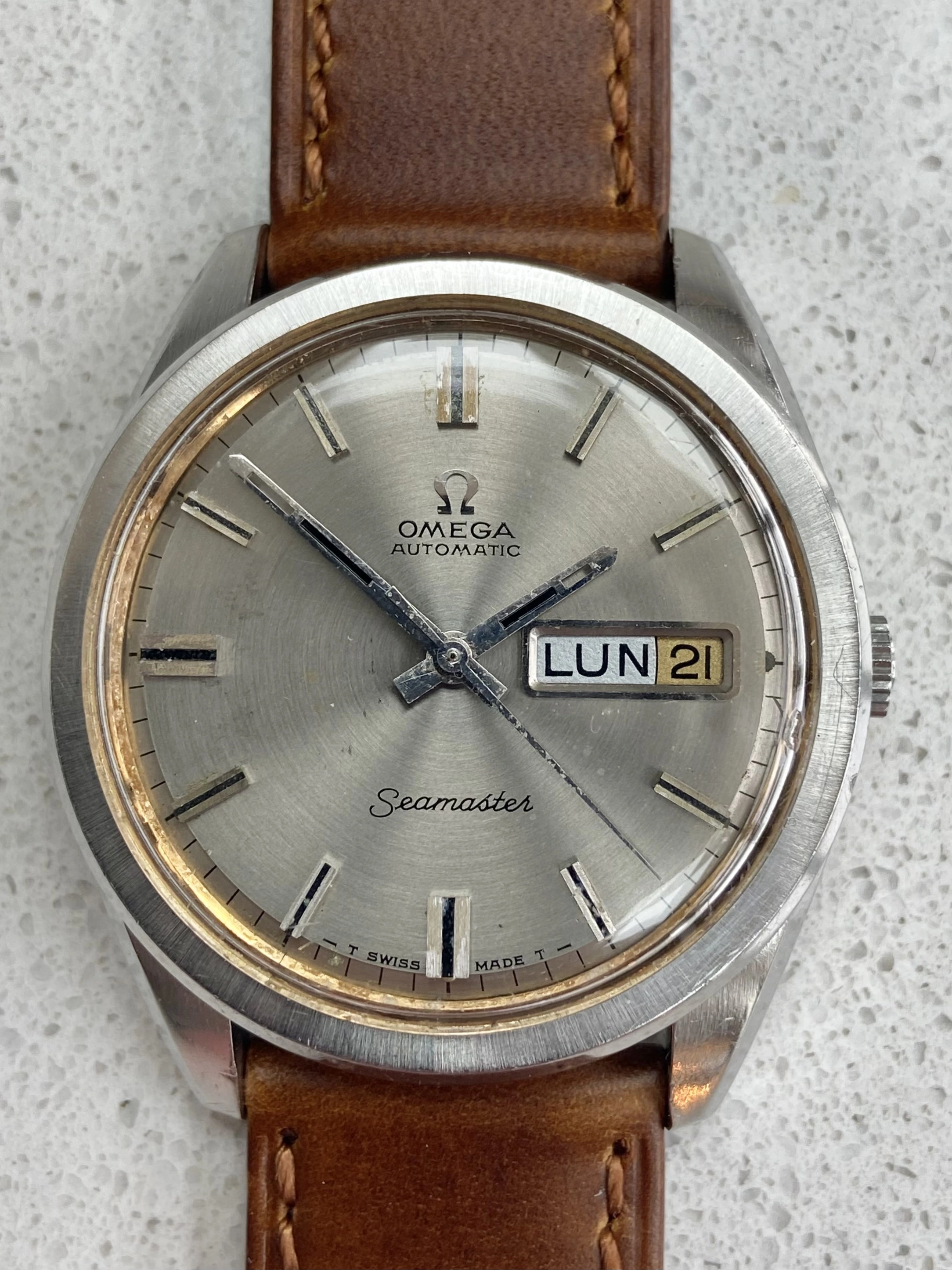 Offering for sale a vintage Omega Seamaster day date, ref 166.032. This watch has a couple of issues but is largely original and is a great opportunity to buy this reference at less than half the usual price.