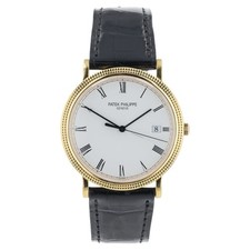 | Patek Philippe Calatrava 18K Gold White Porcelain Dial Manual Wind Watch 3520D chronostore (12990) |