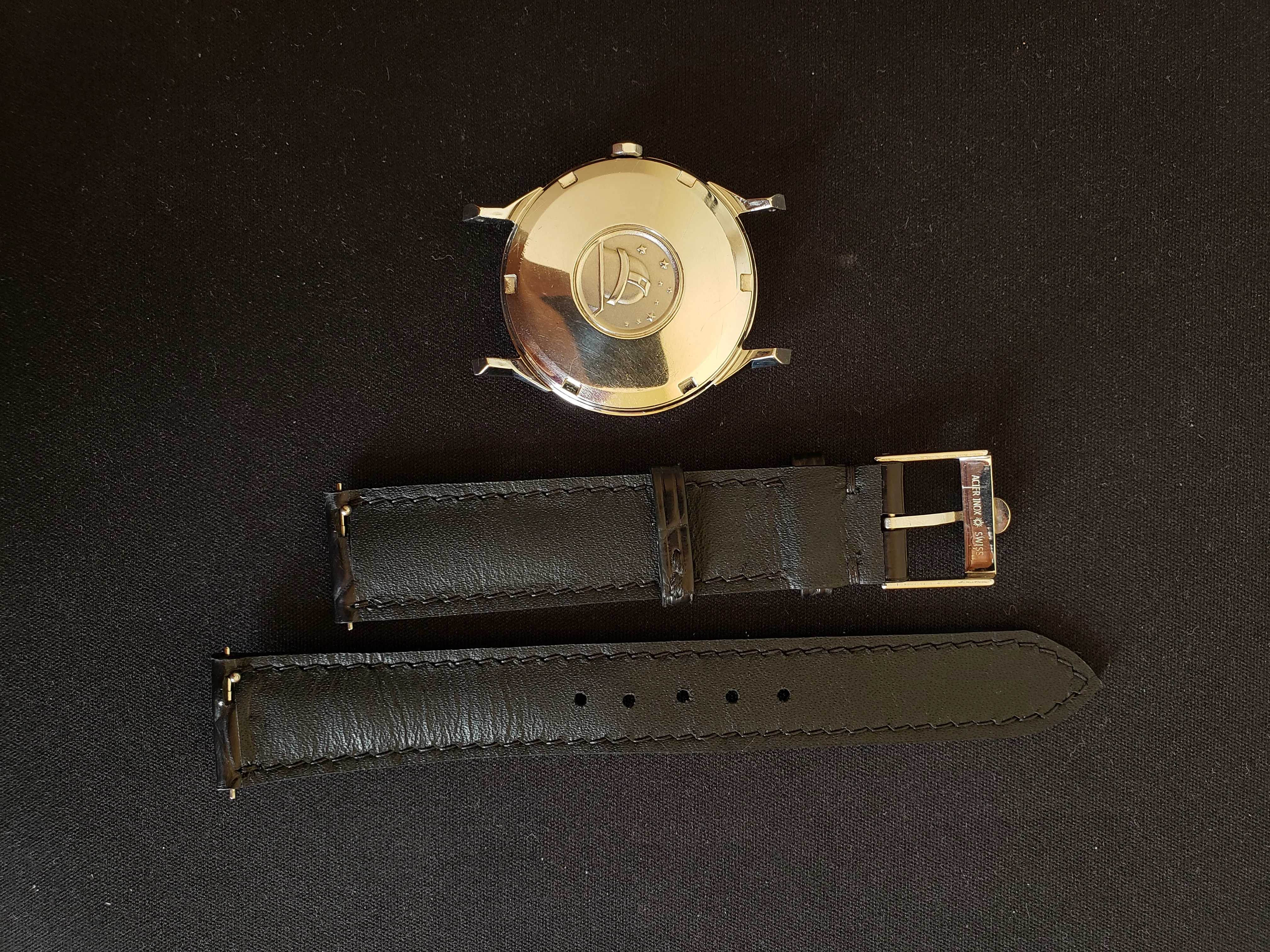 - Strap: Brand new handmade crocodile leather strap with smart spring bar. Aftermarket Omega buckle.