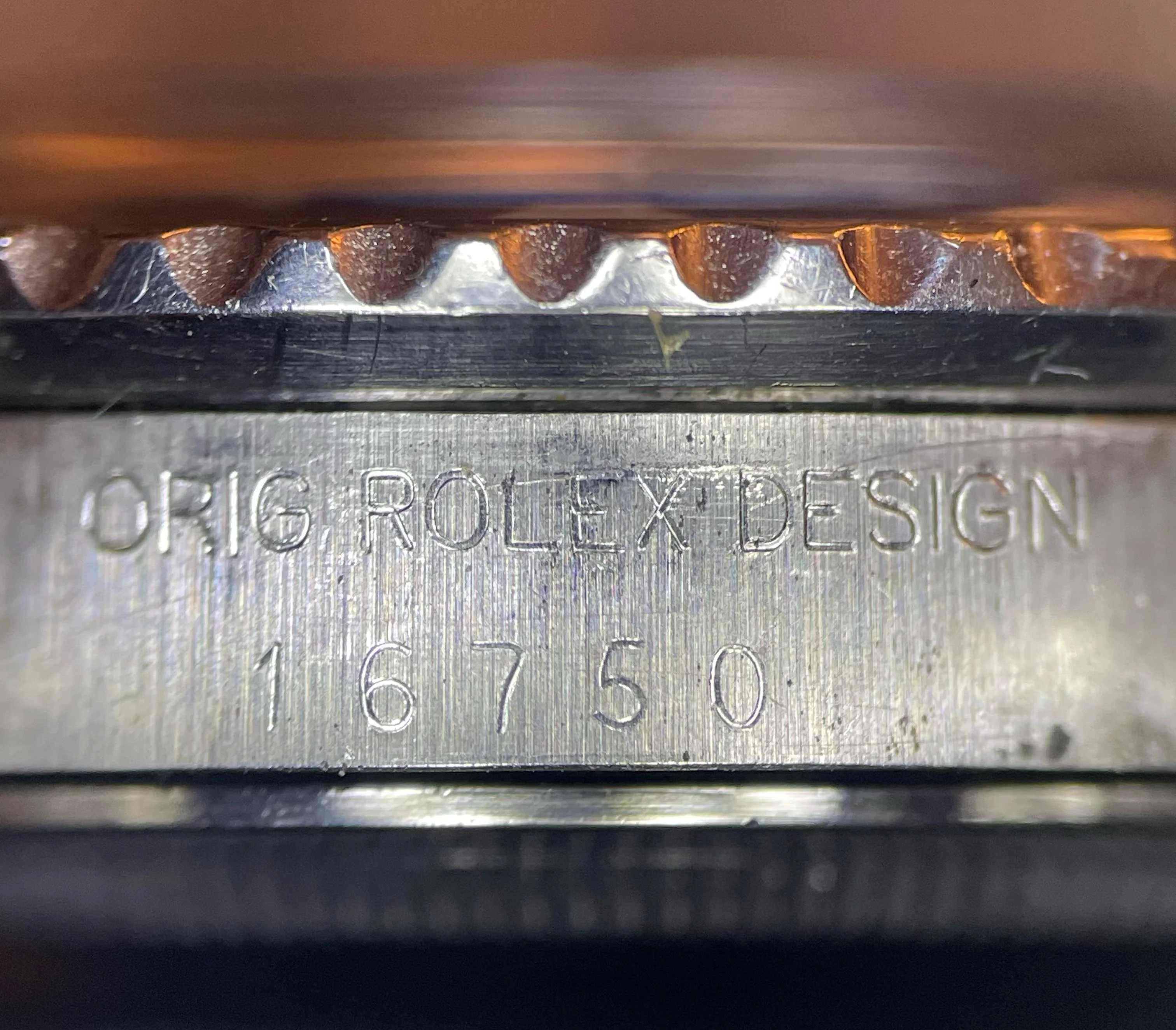 The ref. 16750, that followed 1675 introducing the quick date set and doubling the water resistance rate, is regarded today as a transitional model and was in production for less than ten years.