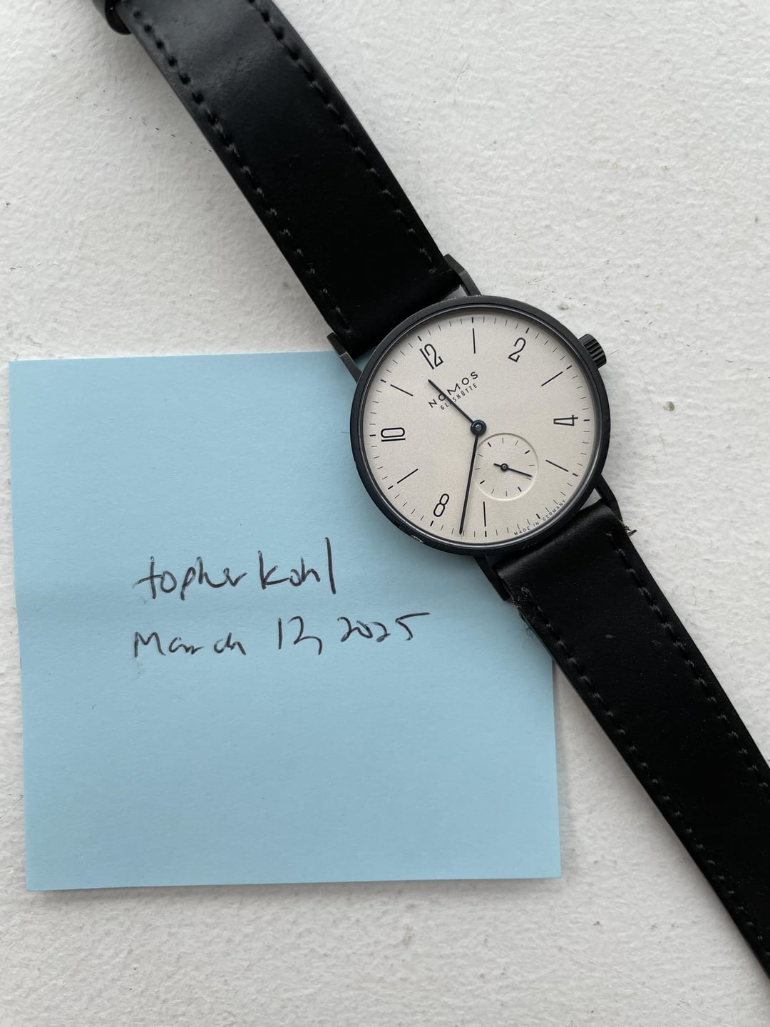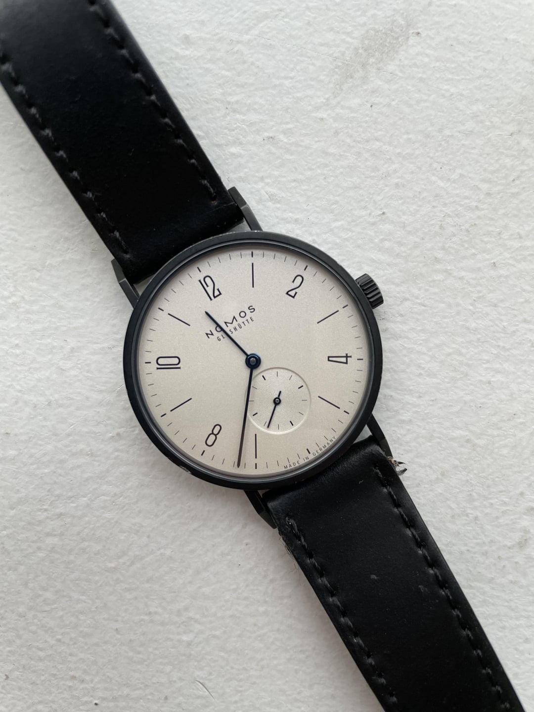 Hi all! Up for sale is my Nomos Tangente 35 Norma - a short lived line Nomos did of DLC-coated cases. I'm taking my collection in a different direction so will be listing a few more rare Nomos watches in the next few days, so keep an eye out! This is the exact same dimensions as the standard Tangente 35, but with a DLC coated case. Really interesting and uncommon. Condition is very good with minimal wear on the coated case, mostly along the 9:00 side wear some of the coating has rubbed off. Full set, with a newer Nomos cordovan strap with plenty of life left in it. Hard to price these as there are so few on the market. Looking at 1600 shipped worldwide from Singapore. Payment via Zelle or Venmo preferred, but open to other payment methods. Let's chat. As some of you have messaged me to ask - I've recently relocated to Singpaore. No worries - same guy as before, but just shipping from over here now. :-) [Timestamp](https://imgur.com/a/DlnXf3e) Cheers, Chris
