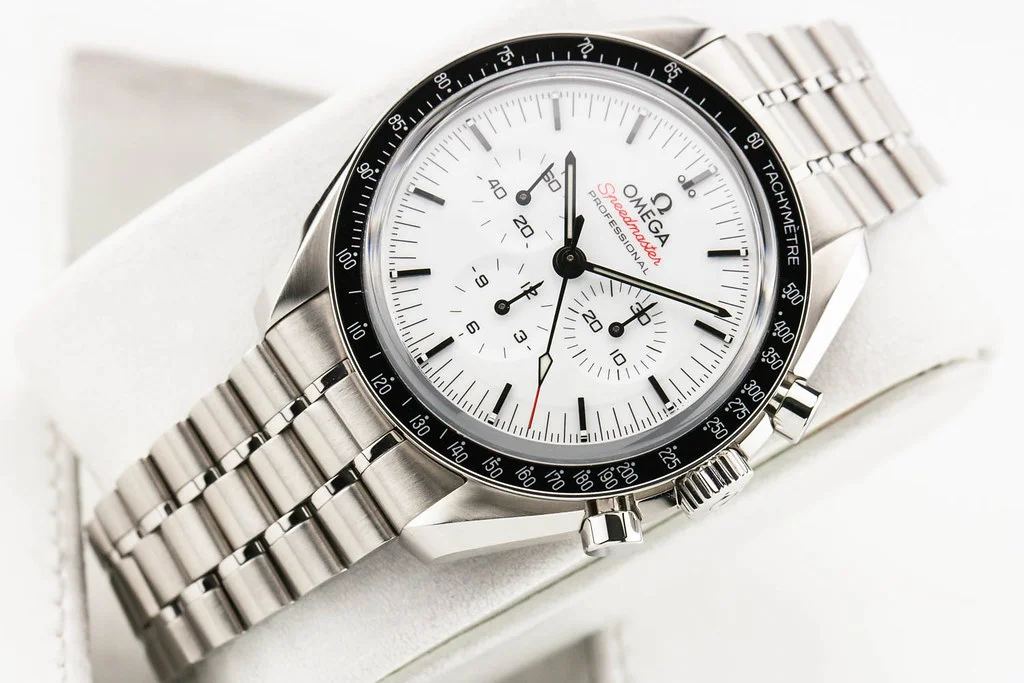 Up for sale is an excellent condition Omega Speedmaster Moonwatch Professional White Dial Sapphire on Bracelet, reference # 310.30.42.50.04.001 It comes complete with all boxes, papers, booklets, hang tag, and Omega Warranty Card dated October 2024.