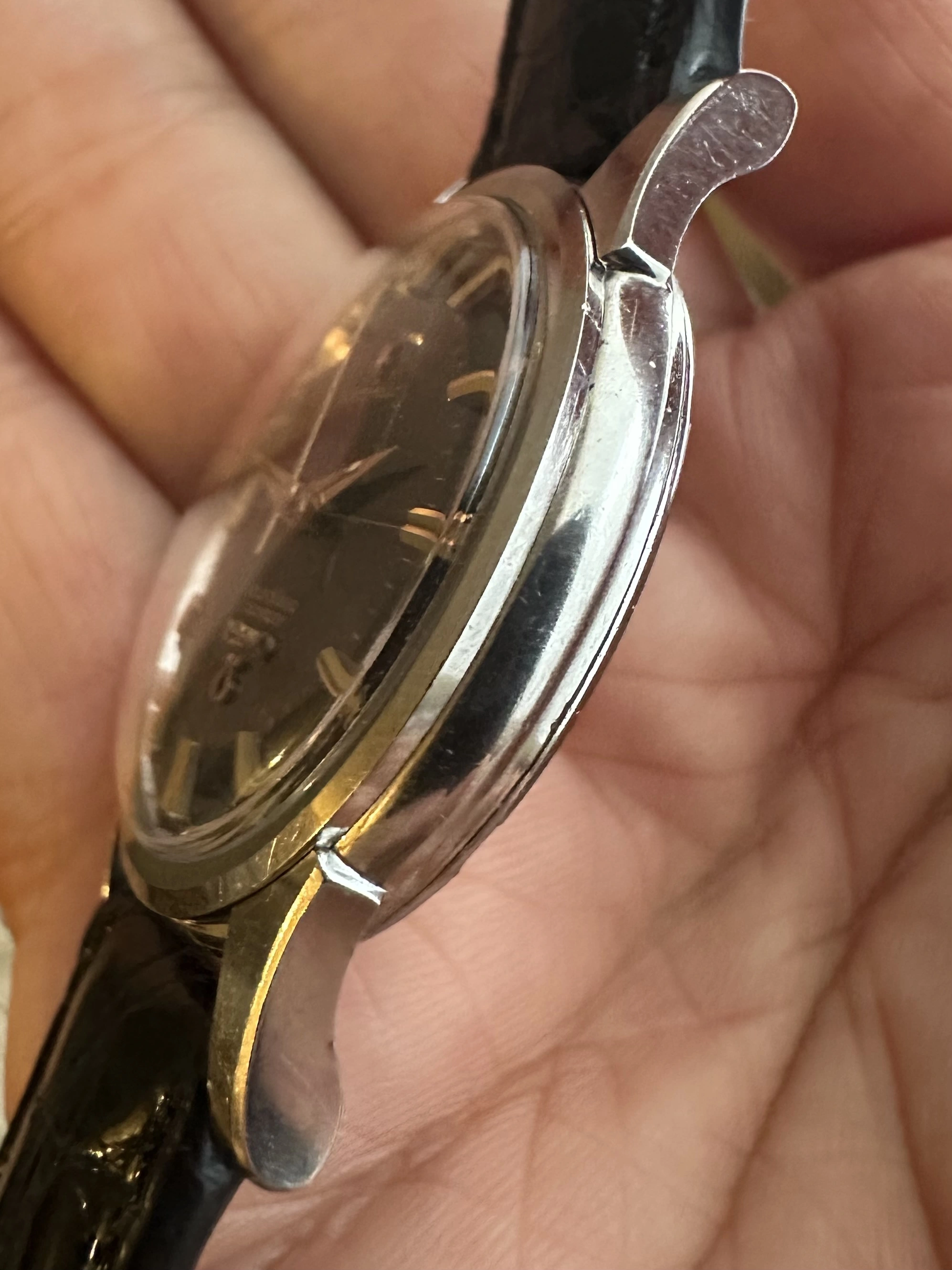 Movement: Omega automatic caliber 561 with 24 jewels and a semi quickset calendar function. The movement is clean and in excellent condition and was recently checked by my watchmaker who concluded that it does not currently need service. The watch is keeping very good time at +10 seconds for 24 hours. The watch winds up very smoothly and both the crown action and hand setting is very precise. I do not have service records,