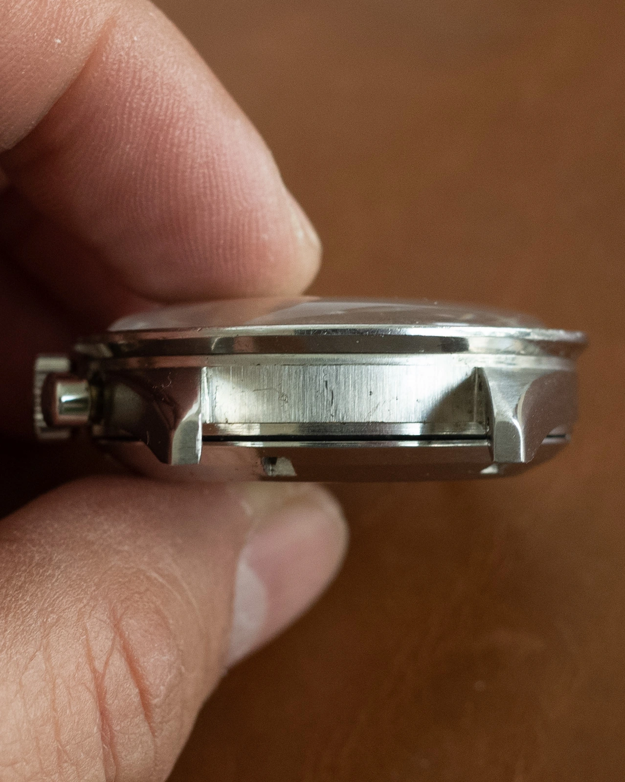 Case: Correct original straight lug case has been previously polished and shows signs of wear, but still retains its shape with thick and even lugs