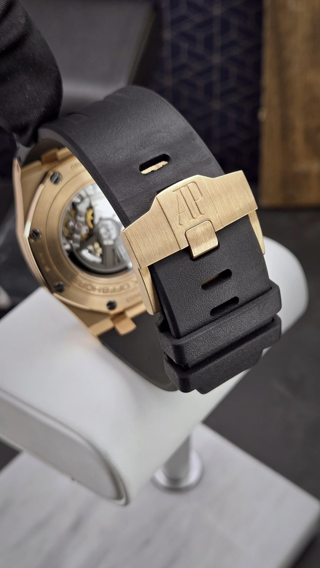 Audemars Piguet Royal Oak Offshore Chronograph Model - 26401RO 44mm Complete set It includes all boxes and papers including warranty certificate and chronograph booklets This timepiece is in excellent condition with little to no scratches through case, bezel and lugs. Crystal is intact and mechanically runs strong as shown in the timegrapher. The rubber strap makes for a very comfortable presence on the wrist. Featuring a black dial with white subdials and a stunning 18k rose gold case. The black ceramic bezel is aesthetically pleasing in the day. I do my best to show the condition of the watch through the pictures. Everything is 100% original and was taken care of with the utmost delicacy and I take full responsibility for my merchandise. My price is $33,500 shipped Shipping: USA Only. Fedex Express fully insured and signature upon delivery. Local meet up in the Greater Houston area. References and reviews available. Feel free to contact me for any questions and I will answer them as soon as possible!