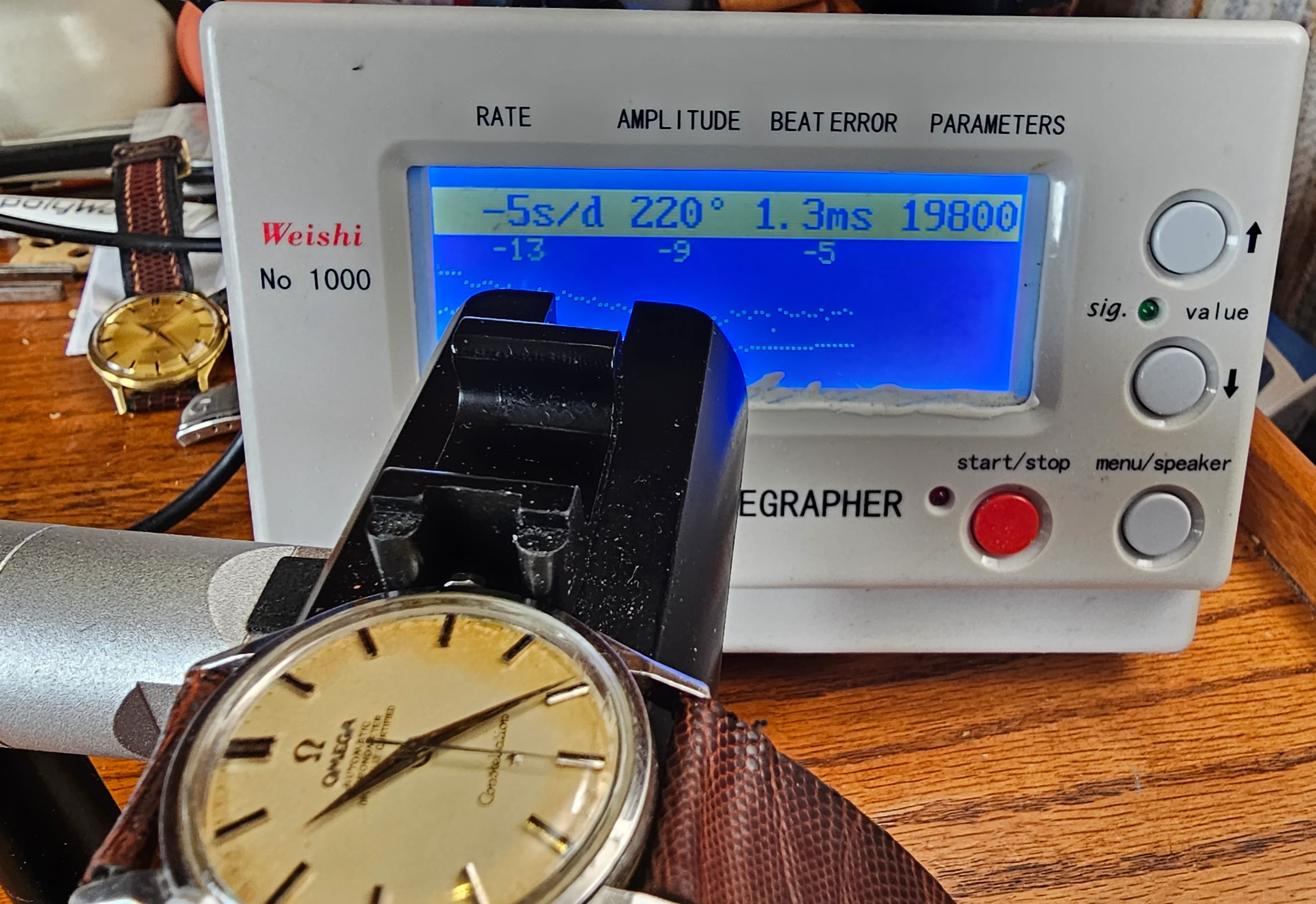 Hands and furniture are correct and matching, hour markers have onyx inserts and the crystal is Omega original with small logo in the middle.