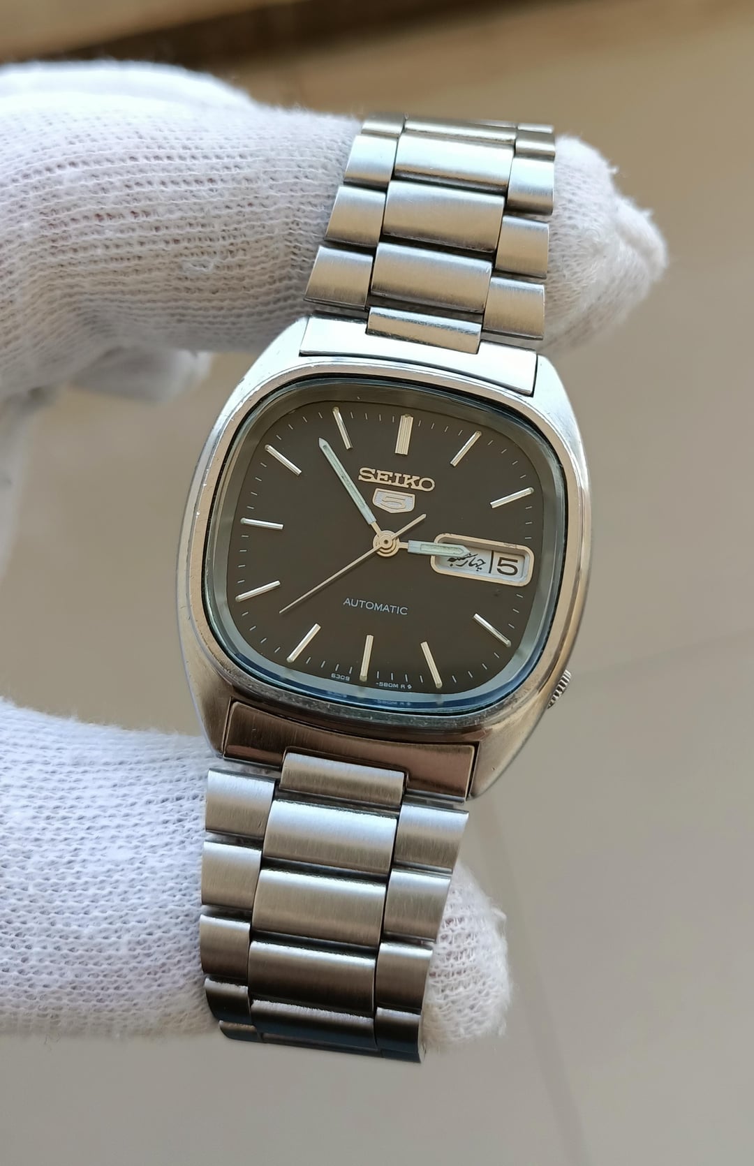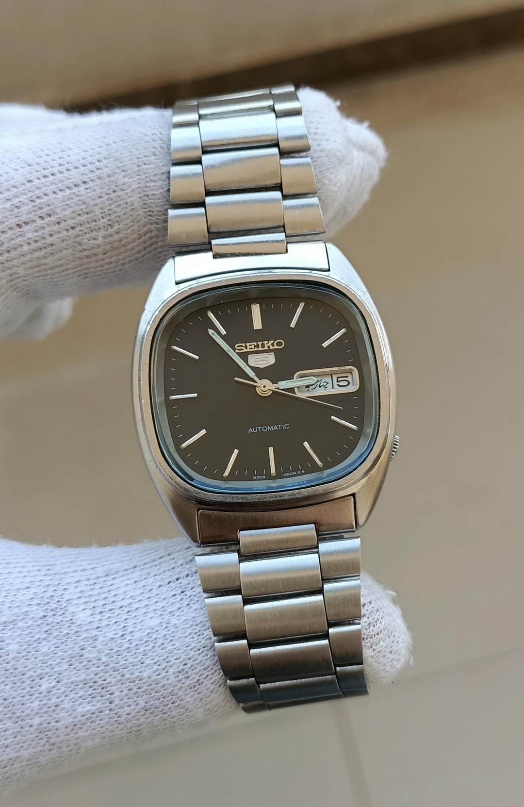Seiko 5 Automatic Watch. Ref -6309-5800. Description and Features: Overall this is in good Working condition. This watch is used and shows signs of wear. There are some scratches on the case. Features: 12-Hour Dial, Day/Date. Movement: Mechanical (Automatic) Glass: Mineral. Case Material: Stainless Steel. 17 Jewels. Please see the pictures carefully. It will fit wrists of up to 20 cm. SPECIFICATIONS: Movement: Automatic, Case Diameter, 35 mm, Thickness 11 mm, Lug Width 20 mm, Lug to Lug 37 mm, Watch only. Please comment before messaging. Payment Method: PayPal friends & family, Crypto, Payoneer & Binance Only. Shipping From FedEx Express Shipping. Price $130 Shipped. After payment confirmation the scheduled shipping time will be 2-3 working days.