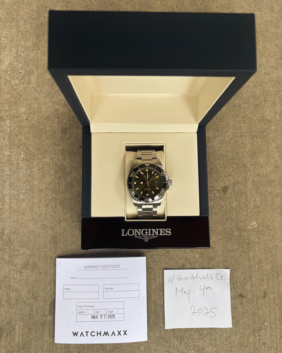Up for sale is a **41mm Longines HydroConquest GMT with the stunning sunray green dial** – reference **L3.790.4.06.6**. This piece was purchased just last month from WatchMaxx and is in **mint condition**, worn only a handful of times. It comes with the full kit: **original box, papers, extra links – everything you’d expect from a recent purchase**. This is an exceptional travel diver – 300m water resistance, ceramic bezel, and Longines’ new GMT movement (L844.5) with a true travel-hour hand. **Elegant enough for the office, rugged enough for the ocean**, and frankly a lot of watch for the money. **Price: $1700 firm**, including **UPS shipping to CONUS**. **Payment via PayPal preferred**. Please **add 3%** if using **Goods and Services**. **Why am I selling?** As much as I love the beauty of this watch, it’s just not the right fit for my slender wrist – and I’d rather see it go to someone who will wear it more often. While I’m relatively new to Reddit, I’ve sold many watches on **eBay as ddegroot23**, where I maintain a **perfect rating**. Buy with confidence. Feel free to message me with any questions. Thanks for looking!