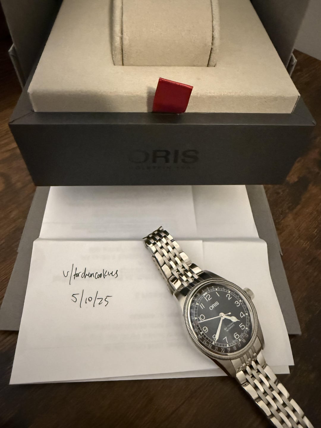 Oris BCPD in 36mm black dial is up for sale! In great condition as I bought it brand new and only wore it a handful of times. Great daily watch and everything runs as it should without any issues. Happy to answer any other questions and provide additional pics if requested. All extra links are included and WatchMaxx warranty card dated Jan 2025 36mm, 44 lug to lug, 17mm lug width, ~38 hr power reserve, 50m water resistance Asking $825 SHIPPED via Zelle within CONUS. Watch is located in Chicago, IL