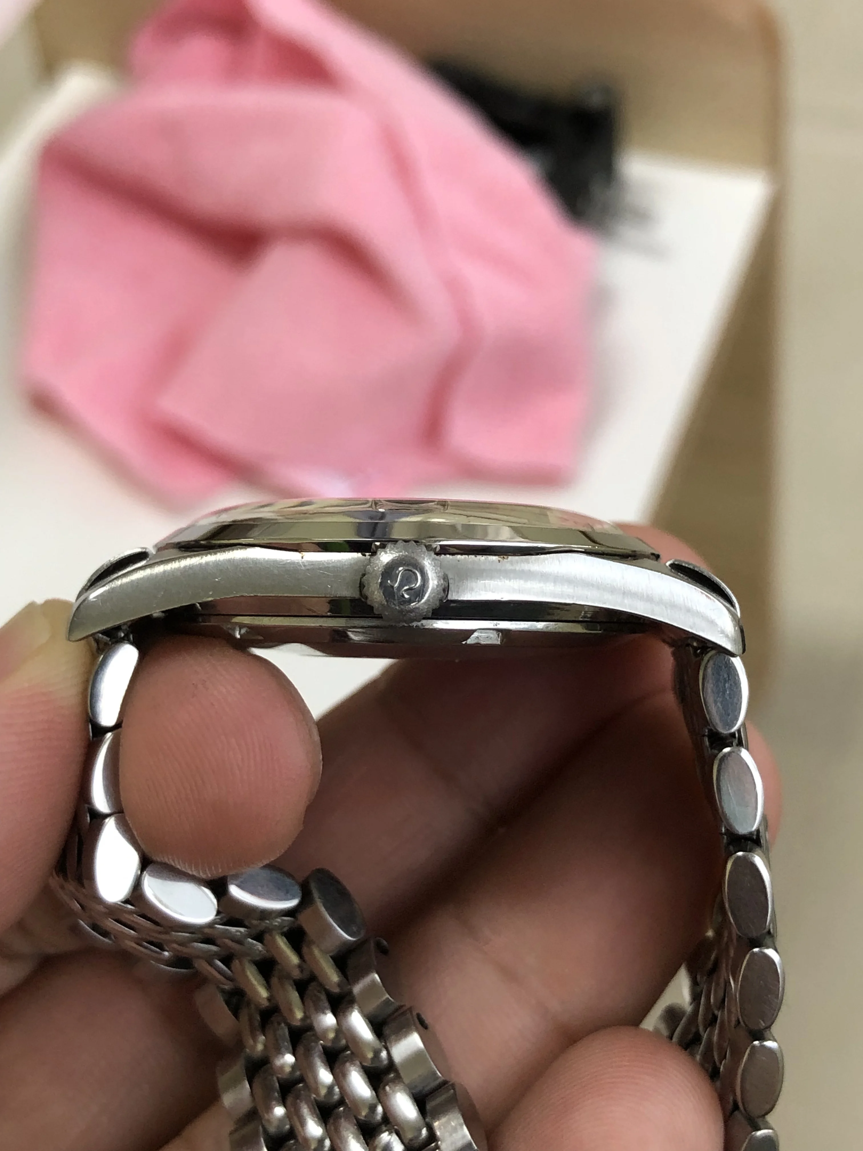 - Case: The diameter is 35mm without the crown. Original case in very good condition with hairline scratches. Original Omega knurled crown.