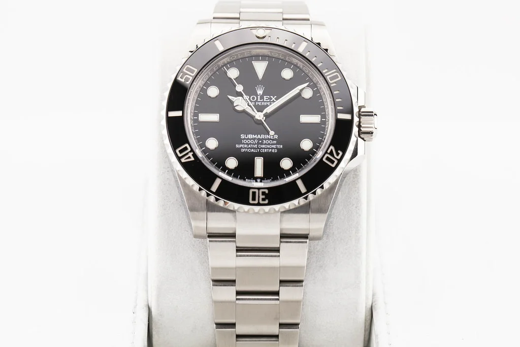 Up for sale is an excellent condition Rolex Submariner No Date 41mm Ceramic, reference # 124060. It comes complete with all boxes, papers, booklets, hang tags, and Rolex Warranty Card dated July 2021.