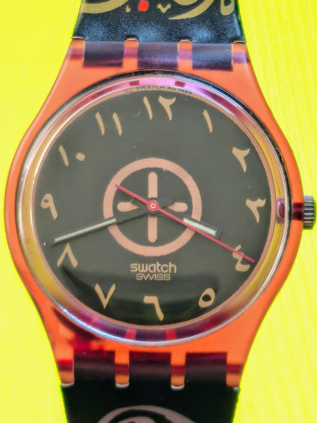 Hello [r/watchexchange](https://www.reddit.com/r/watchexchange/), up for sale **\[PRICE REDUCTION\]:** **My NOS vintage Swatch Bar Oriental \[GR104\]**, Circa 1989, with original box and paper. It’s probably one of the most ‘out there’ Swatch watches ever made. The Swatch Bar Oriental, a throwback to the late 80s, bursts with energy, mixing geometric patterns, electric blues, deep purples, rare golds, whilst presenting a watch face with classic Arabic Eastern numerals. The watch straps tell a story of jazz with a backdrop of orientalism. It’s trippy to say the least! An article was written about the Swatch Bar Oriental in Fratello Watches [https://www.fratellowatches.com/our-favorite-swatch-watches-jorg-connects-the-dots-with-his-swatch-bar-oriental](https://www.fratellowatches.com/our-favorite-swatch-watches-jorg-connects-the-dots-with-his-swatch-bar-oriental) **Watch details** * Quartz Swiss made movement * Watch keeps good vintage time * Dial, case, straps in NOS condition **Hi res photos:** [https://imgur.com/a/QjZCYbj](https://imgur.com/a/QjZCYbj) **Video:** [https://imgur.com/jGORIMw](https://imgur.com/jGORIMw) **Timestamp**: [https://imgur.com/DAIzScm](https://imgur.com/DAIzScm) ***Pricing, Payment & Shipping*** **Price**: ~~200 USD / 150 GBP~~ 169 USD / 129 GBP **Shipping Method**: I ship from the UK. 15 USD / 12 GBP partial payment for worldwide shipping, I cover the rest. I can declare the value of watch to your liking. Free shipping in the UK. Please note that any import duties, taxes, and customs charges are the buyer's responsibility. **Payment Method**: PayPal F&F or G&S (+4.4% Paid by buyer) **Feedback/References:** 100% feedback on eBay (send me a confirmation message there). See: [https://www.ebay.co.uk/usr/spv\_boy](https://www.ebay.co.uk/usr/spv_boy) I'm happy to take a video call to showcase the watch. Please study the photographs to assess the overall condition of the watch. The watch pictured is exactly what you will receive. If you have any questions, feel free to message me. Thank you!
