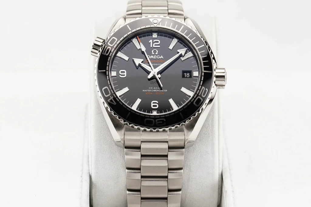 Up for sale is an excellent condition Omega Planet Ocean 8900 Black Dial on Bracelet, reference # 215.30.44.21.01.001. It comes complete with all boxes, papers, booklets, hang tag and Omega Warranty Card dated April 2019. Underwent Omega Complete Maintenance Service as of February 2025