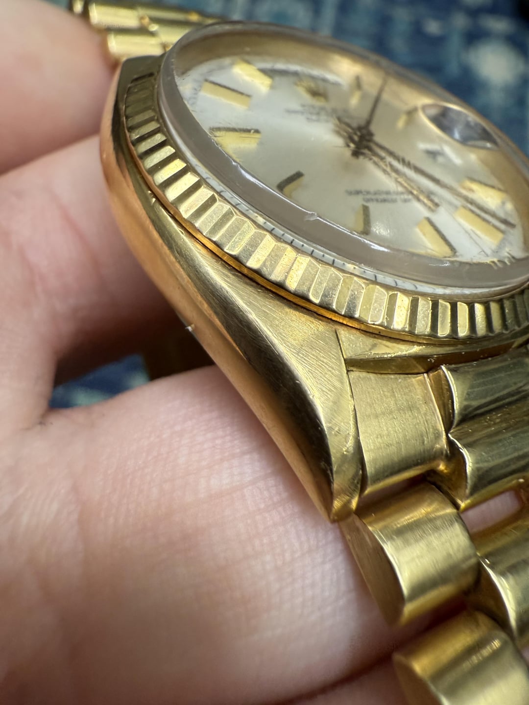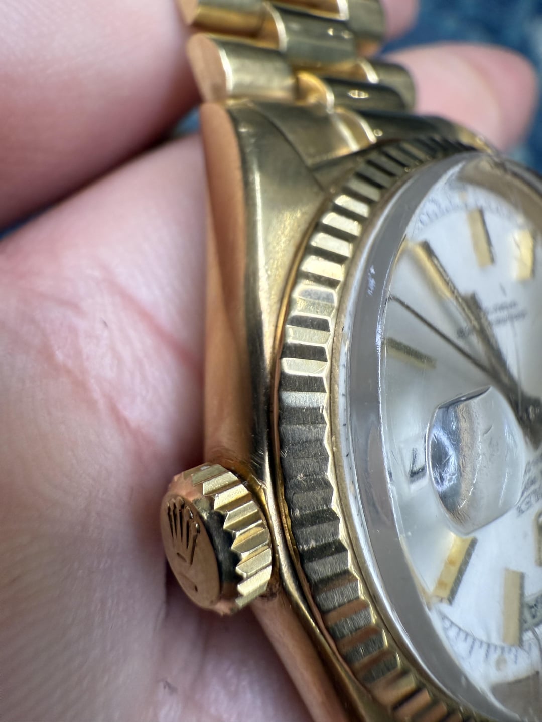 A stunning example of Rolex’s golden era: this 18k yellow gold Day-Date President, comes complete with its original box and papers—a rarity for a piece dating to around 1967 [7.1mil serial]. The case remains in beautiful condition, with sharp beveled edges and all the vintage charm you'd hope for. These early Day-Dates are getting harder to come by—especially in this condition and with a full set. Asking : $16,500 For inquiries, email me at [**[email protected]**]() or message me on Instagram @ **thatvintage.ginger**.