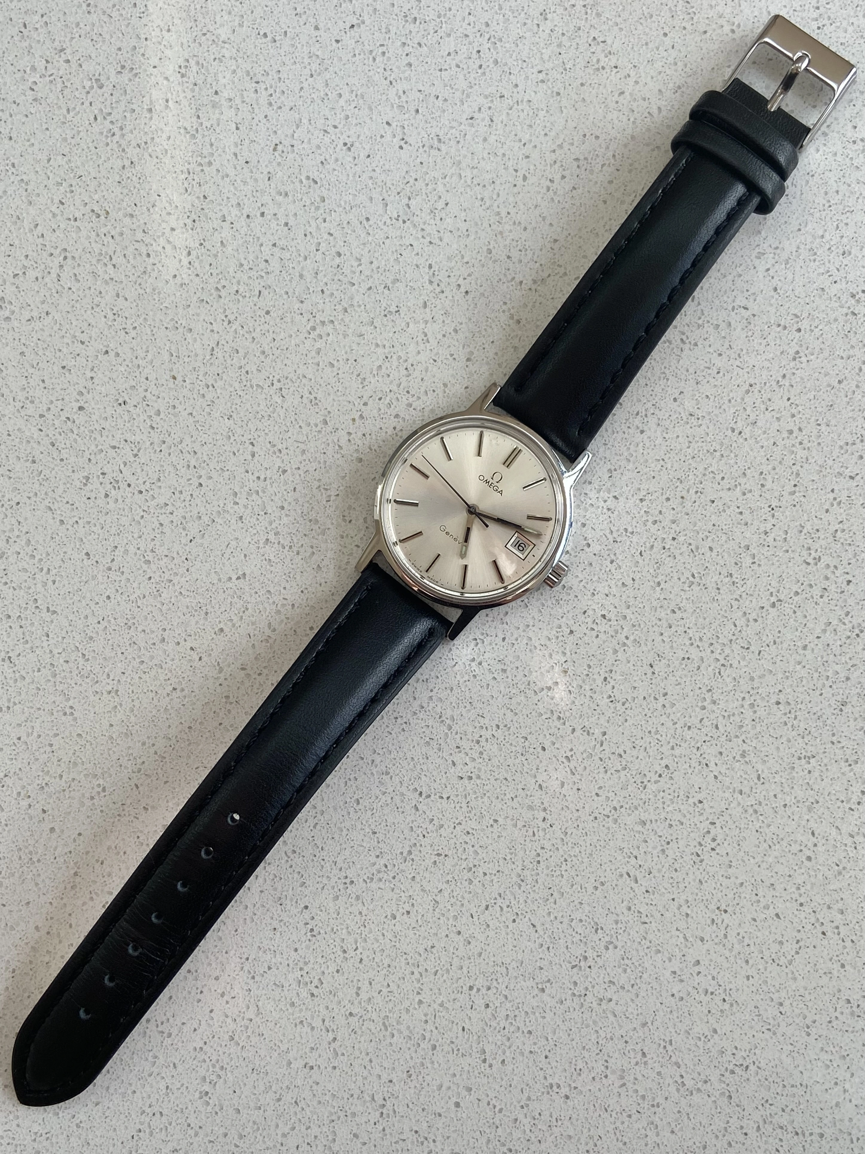 Vintage Omega Geneve ref 136.0098, stainless steel with original silver sunburst dial. This watch is a great balance between price and condition and would make an ideal starter watch for a new collector or a daily wearer.