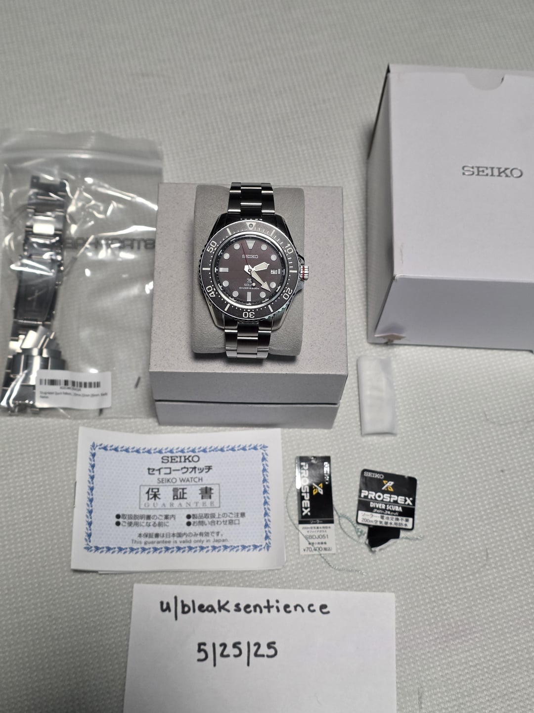WTS my SBDJ051 Prospex Solar Diver Awesome solar diver with sapphire crystal. Makes a great grab and go daily Full set Includes Island Watch oyster bracelet, OEM bracelet, box, papers etc Asking $300 shipped Thanks!